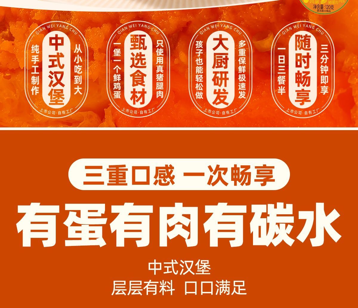 鲜肉鸡蛋汉堡120克