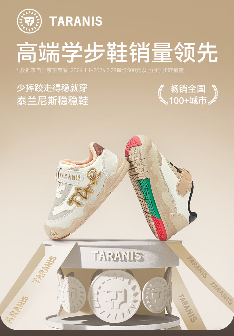 泰兰尼斯学步鞋男宝宝秋季新款童鞋软底鞋子女童机能鞋防滑面包鞋 T01T4C5607