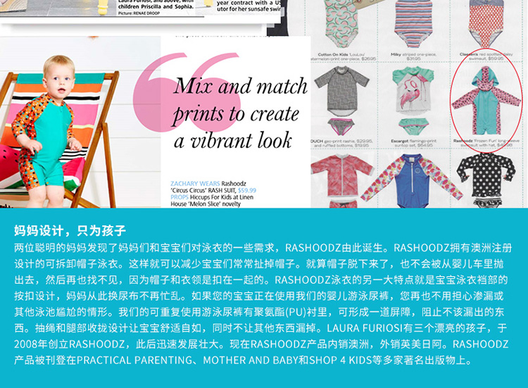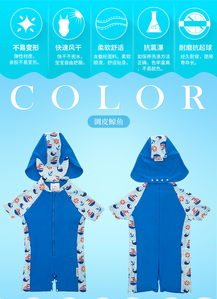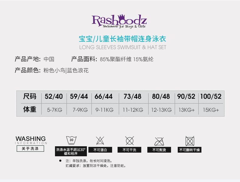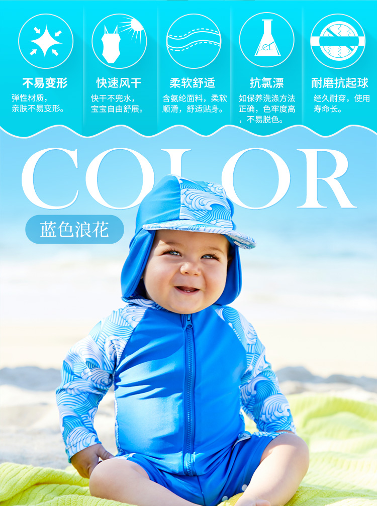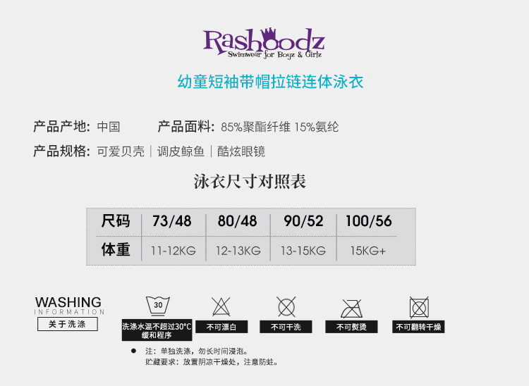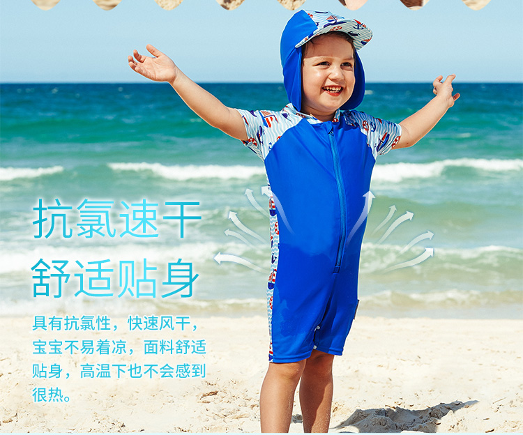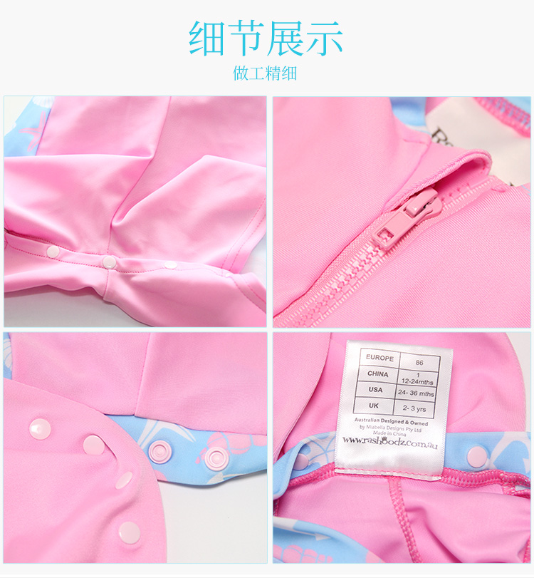 澳大利亚Rashoodz儿童长袖/短袖带帽连身泳衣拉链宝宝连体泳衣