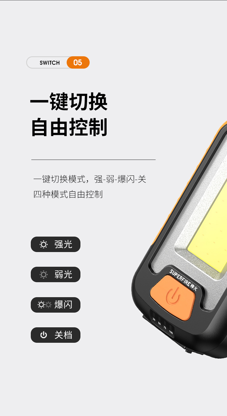 SUPERFIRE神火新品G21工作灯多功能迷你便携USB充电户外强磁维修LED营地灯