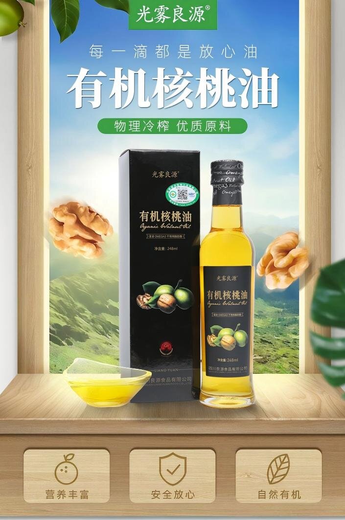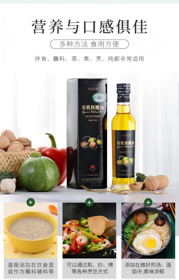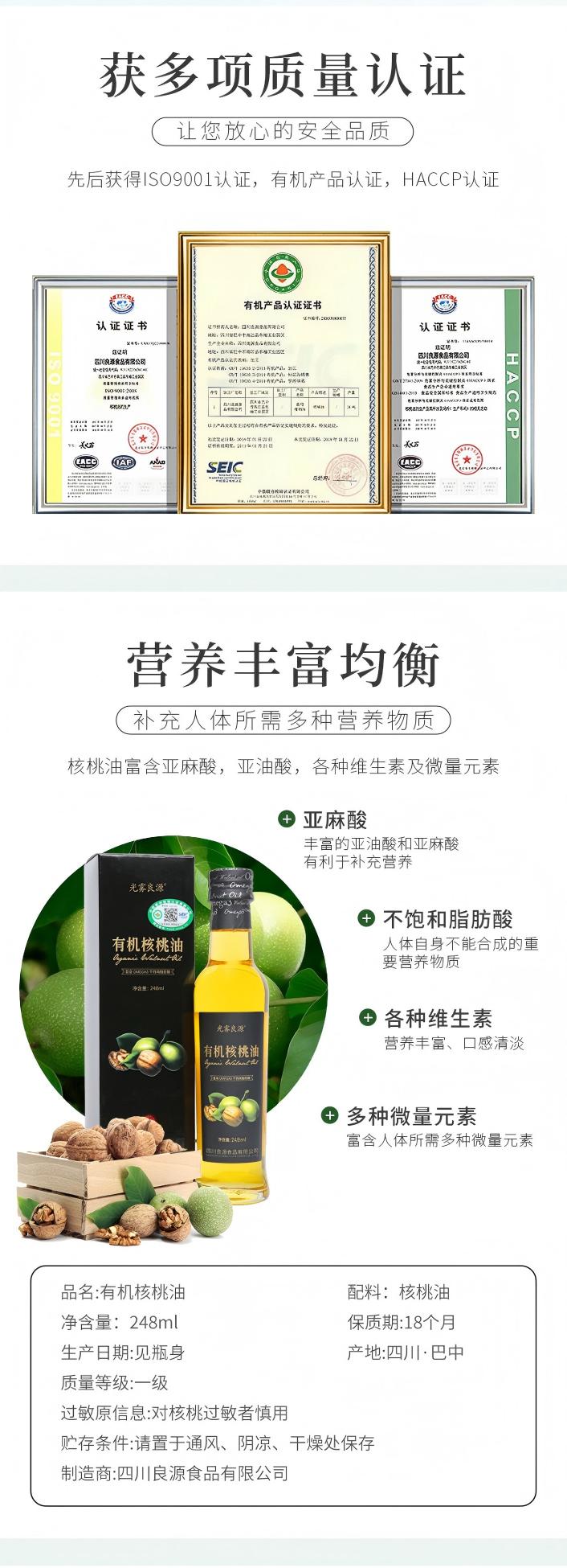 有机核桃油 物理低温冷榨营养成分高 益脑心脑健康腰膝肾 厨房烹饪 核桃油248ml/瓶