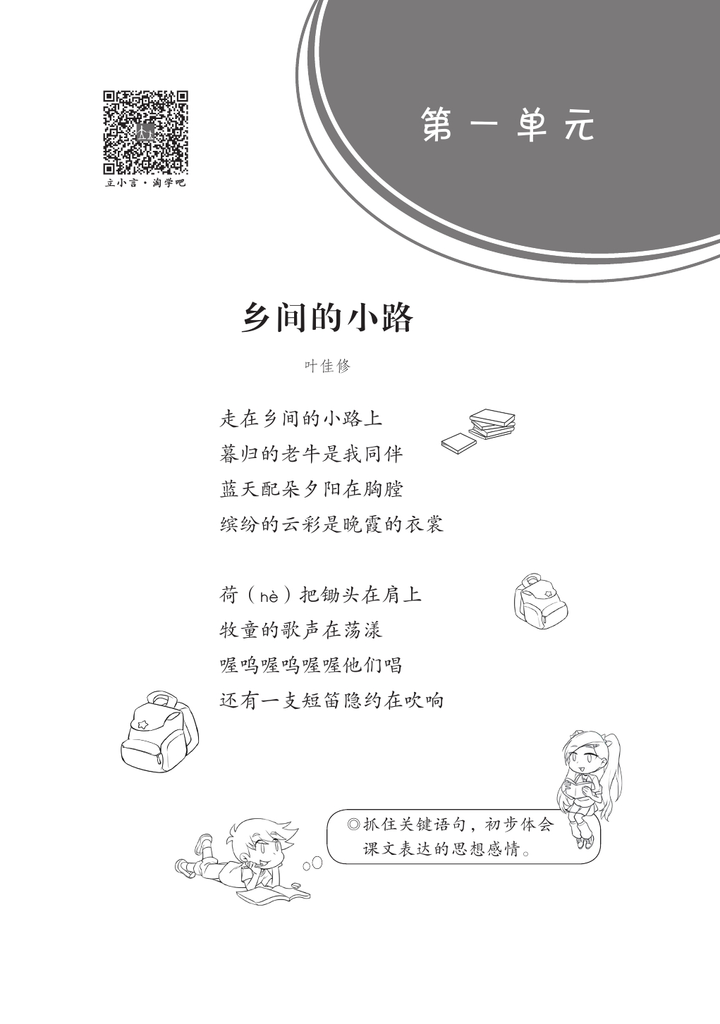 统编教材对对读的每篇文章都有在线微课辅助孩子进行学习,扫码即刻学习。