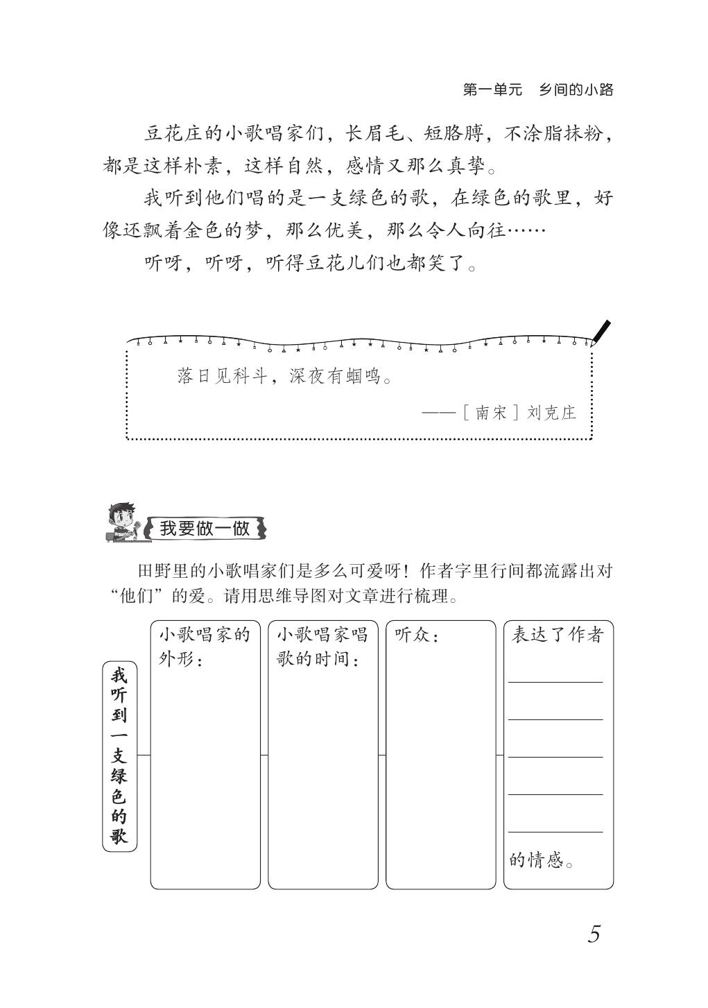 只名叫“张来福”的猫(节选)》,自行完成文章后面的习题。习题以思维导图或图表的形式呈现,可以帮助我们更好地将课内习得的方法,在课外阅读中进行实践。