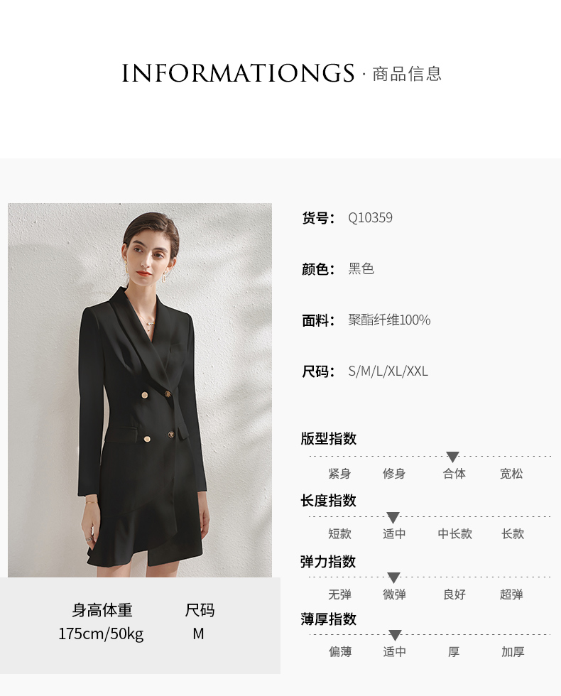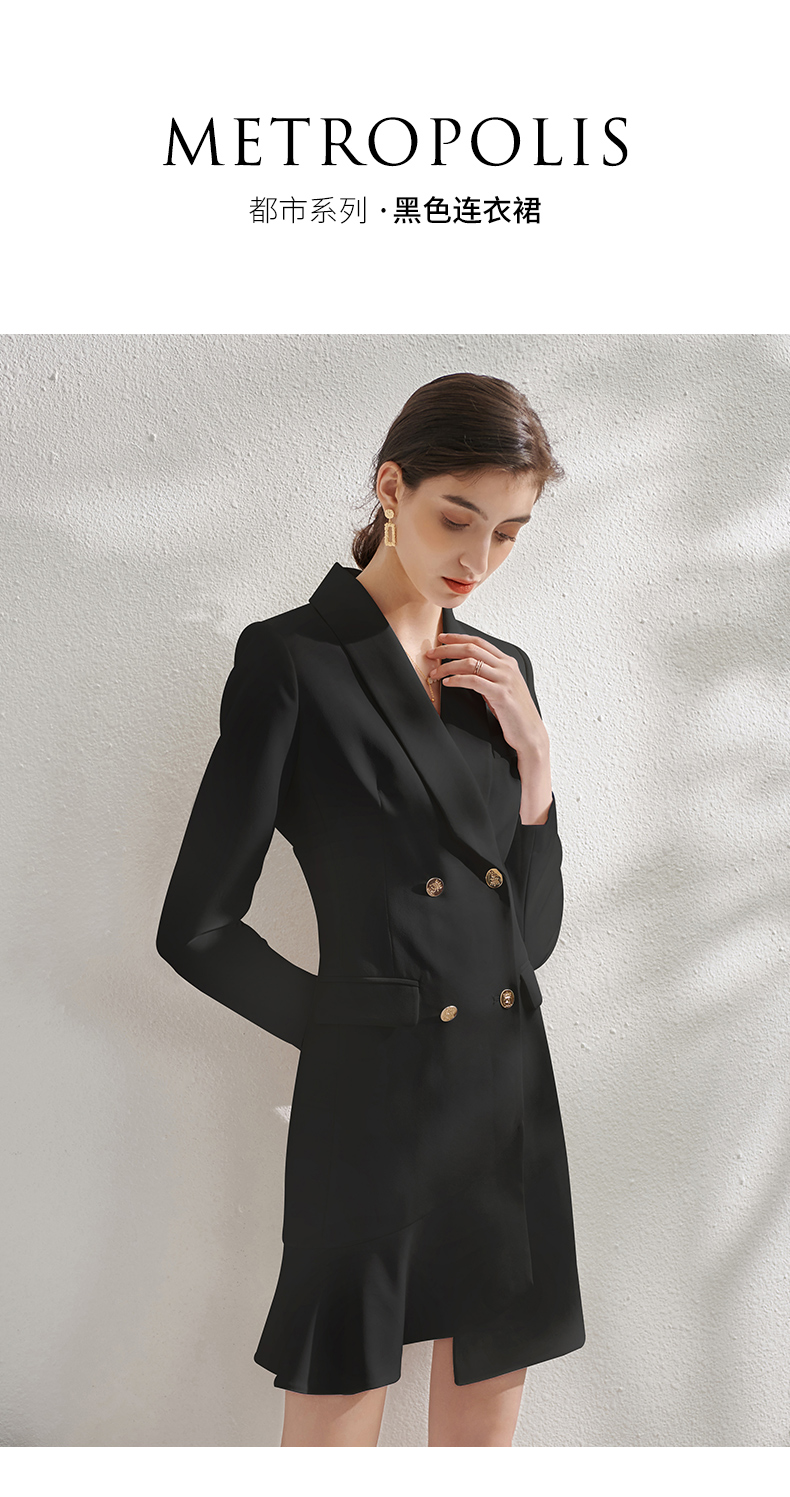 IWY/黑色职业西装连衣裙时尚办公室职场工作服主持人名媛气质修身 Q10359