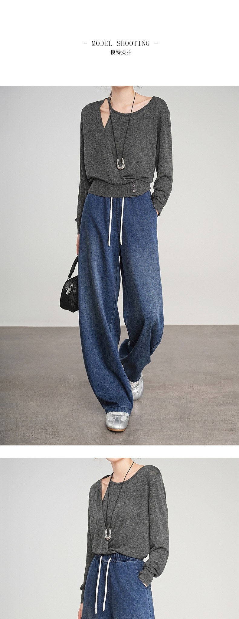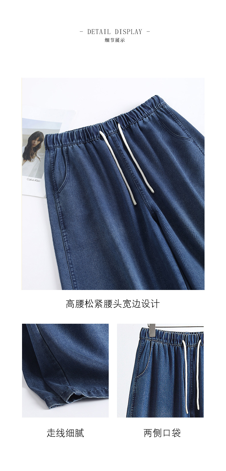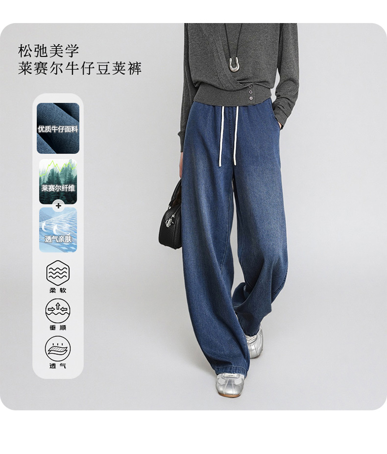68%莱赛尔天丝牛仔松紧高腰豆荚裤 A-5241