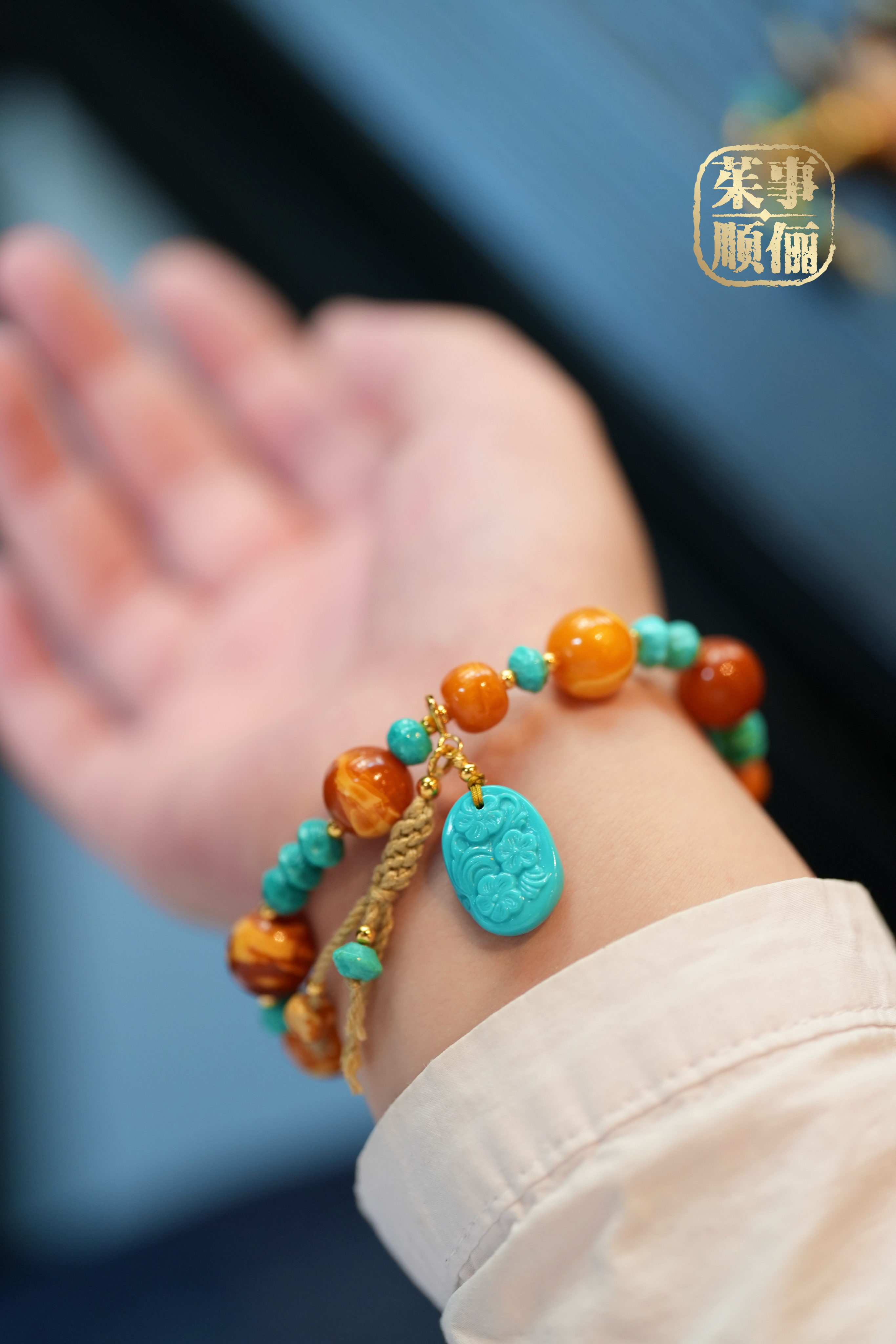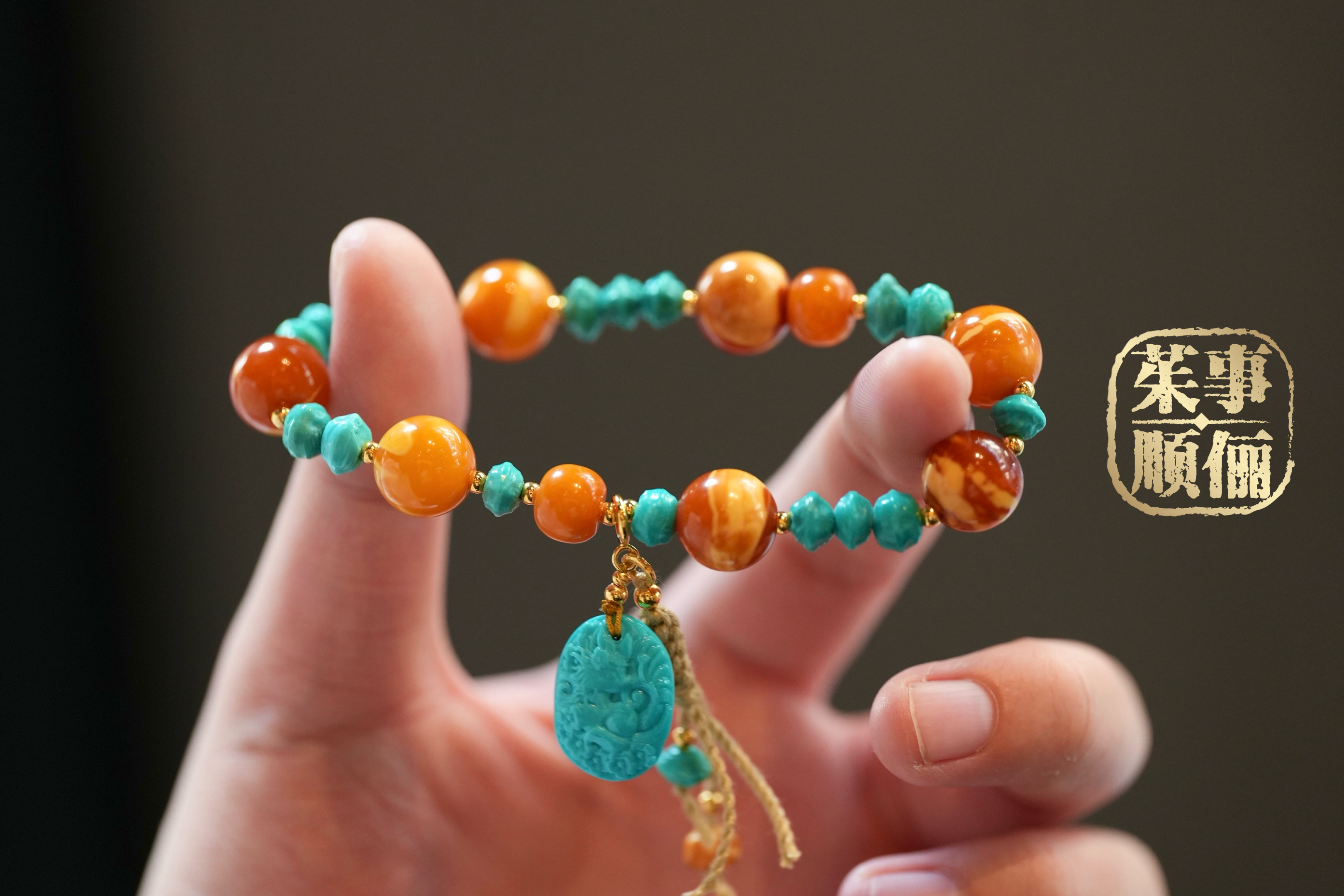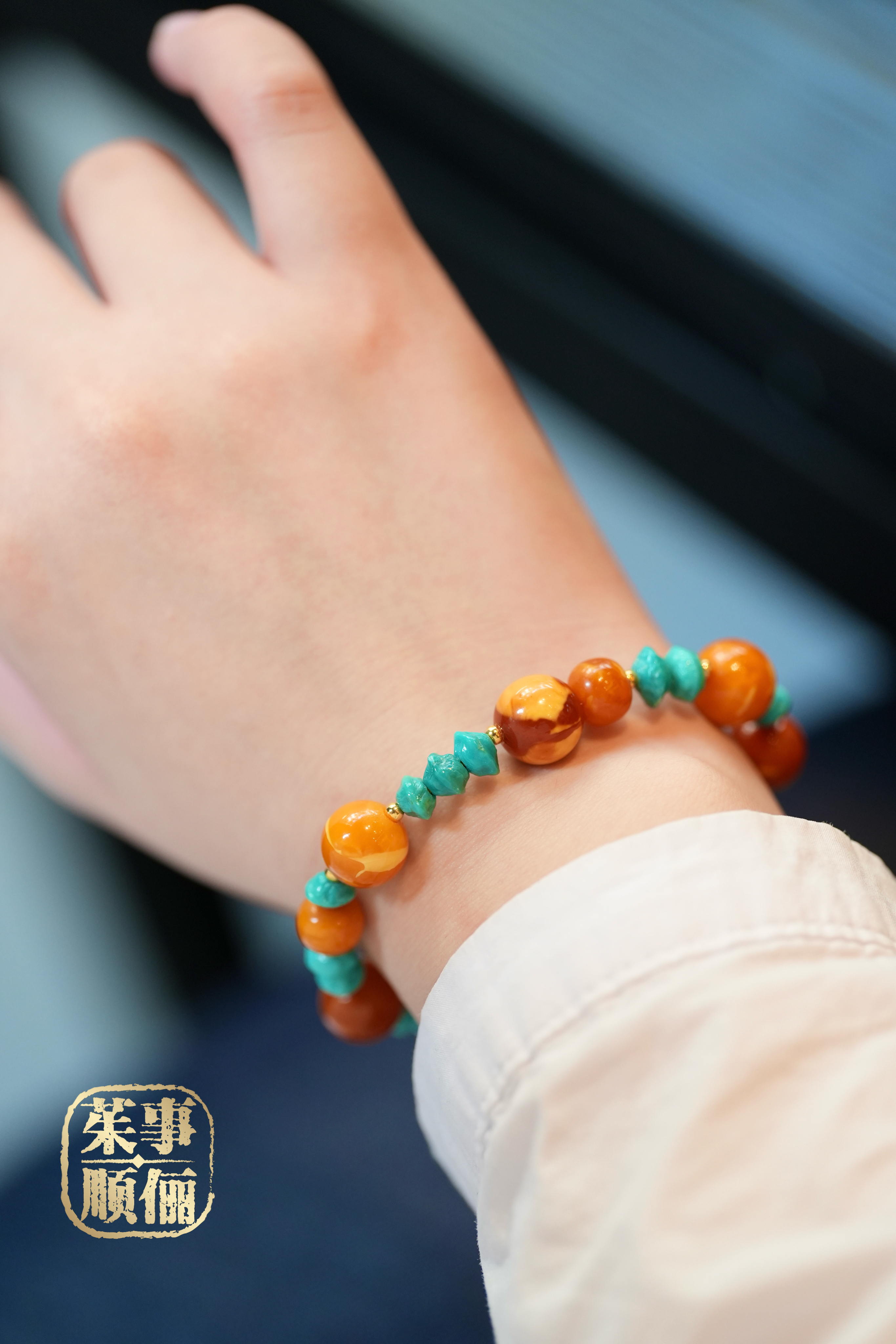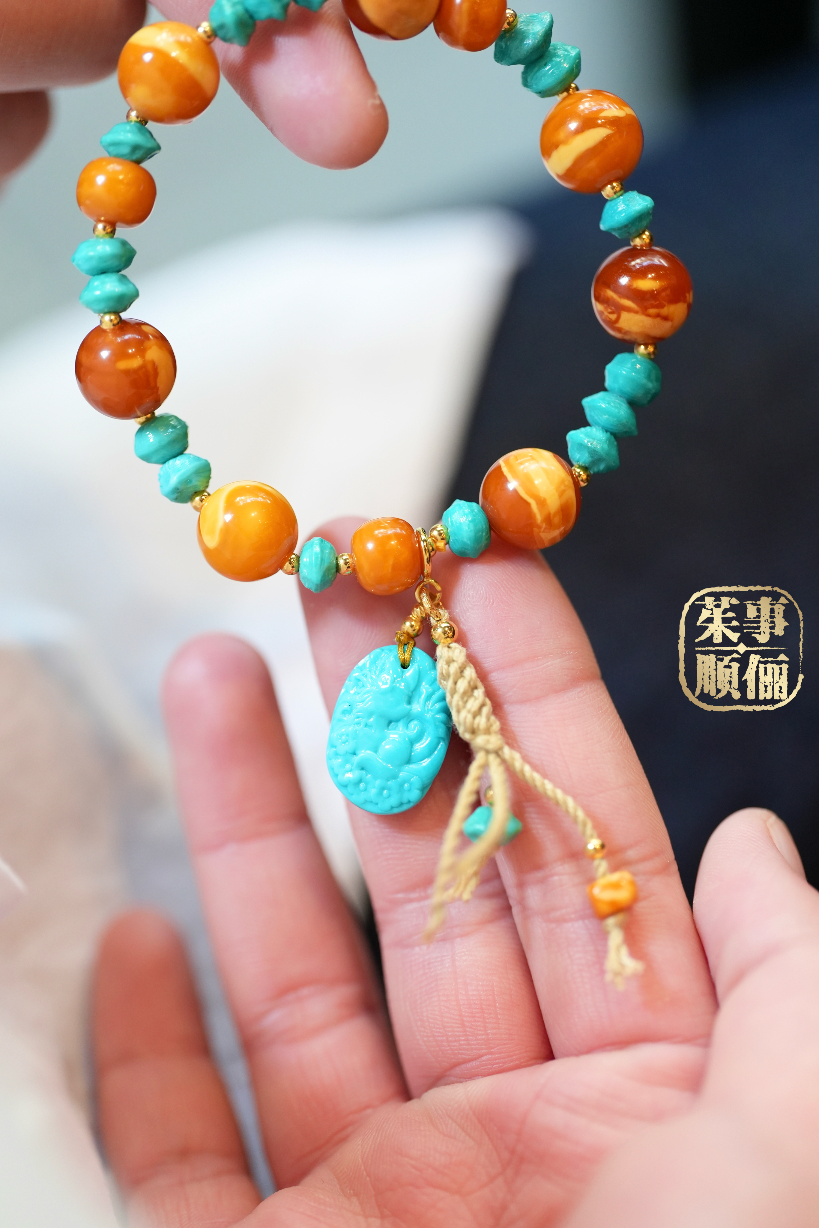 【26年女神樱花季】18k金蜜蜡绿松多宝手串