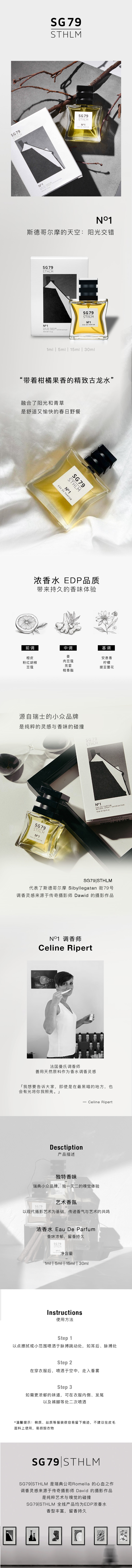 瑞典进口 SG79 EdP淡香精 艺术香水 N°1斯德哥尔摩的午后:阳光交错