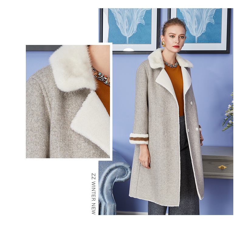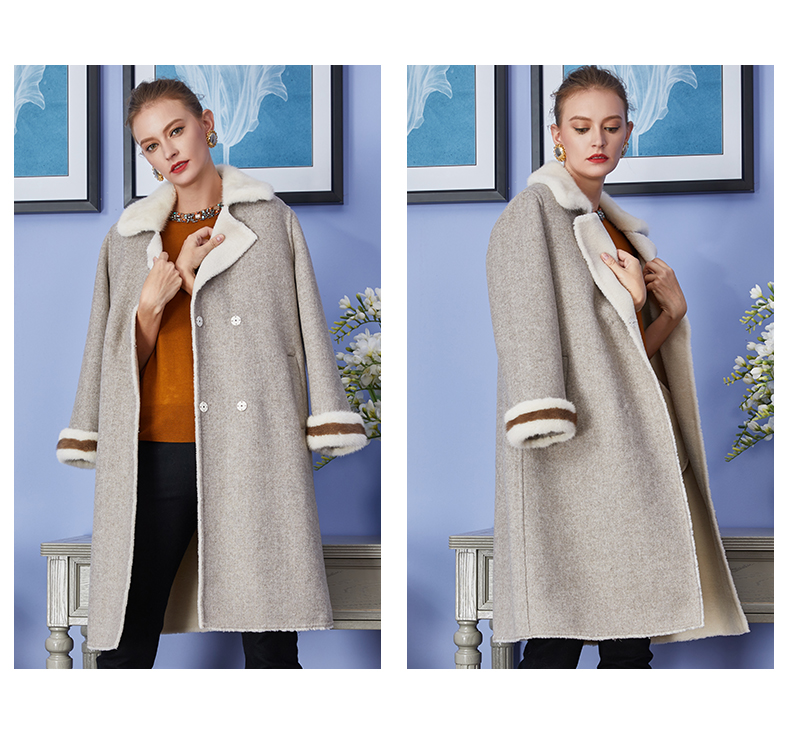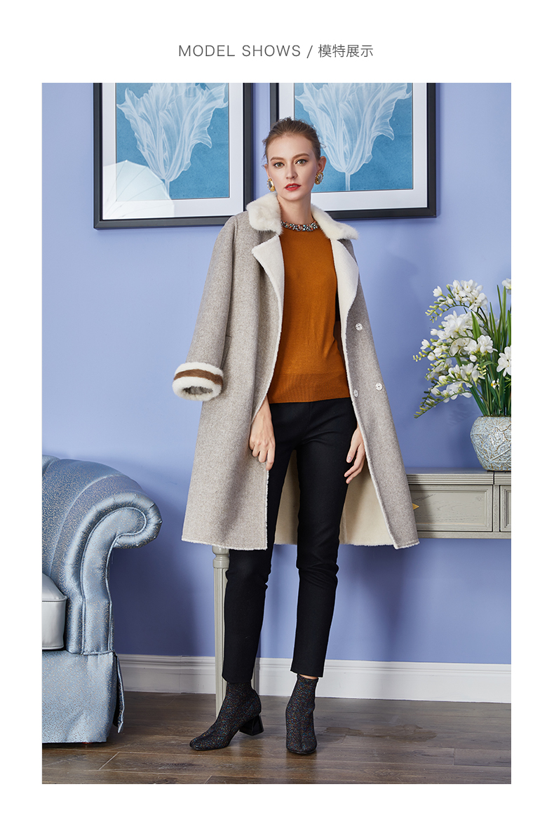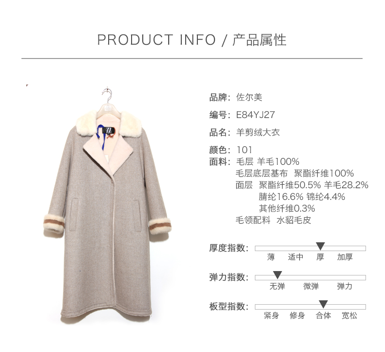 佐尔美冬季新品 纯色气质中老年女士中长款羊剪绒毛领大衣E84YJ27