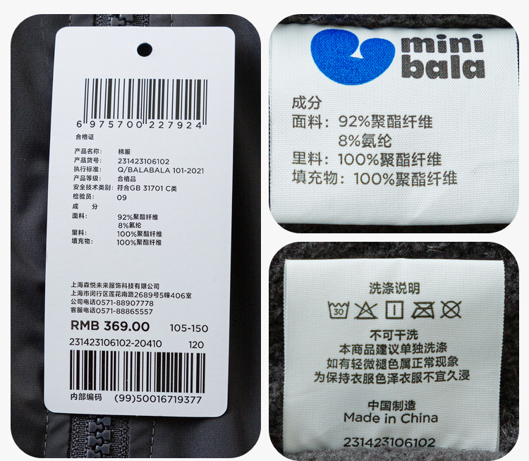 【户外风】迷你巴拉男童棉服冬季宝宝时尚撞色儿童棉衣外套
