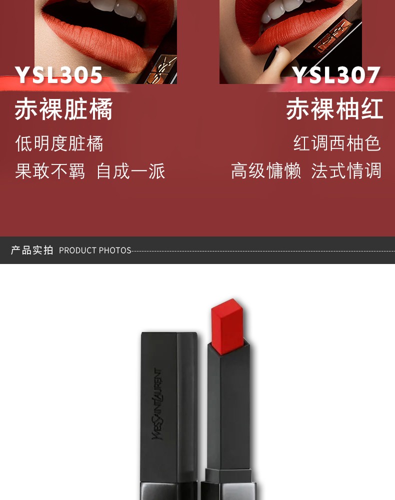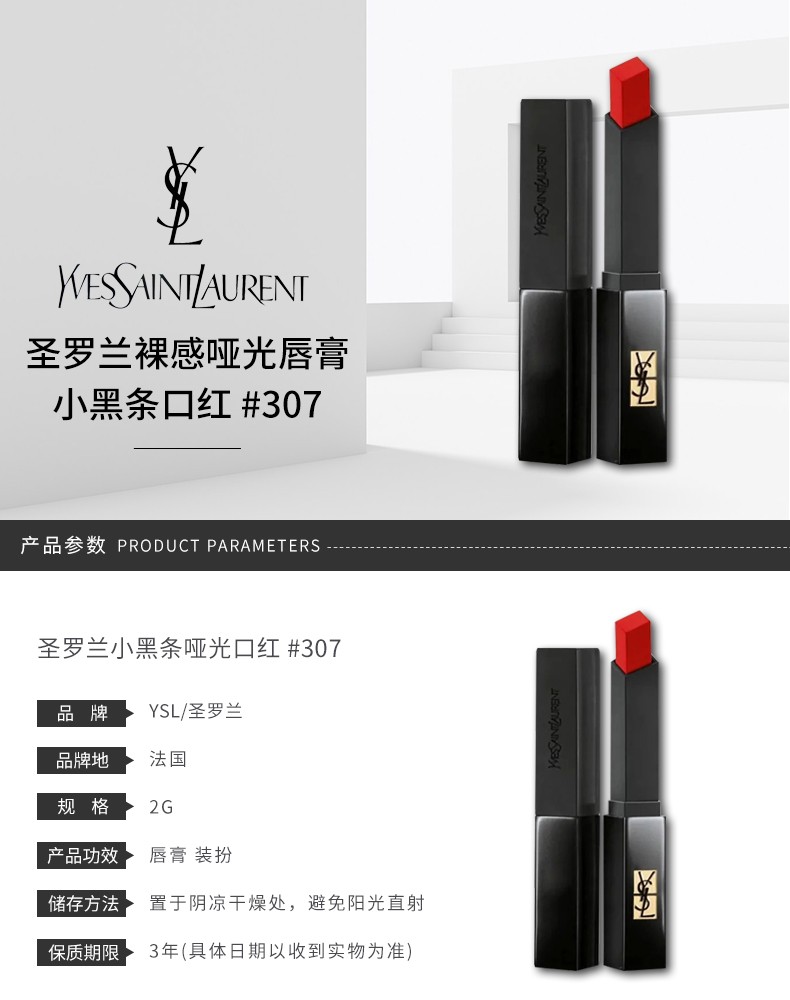 YSL圣罗兰 细管丝绒纯口红 小黑条307# 2G