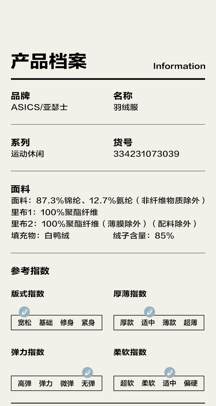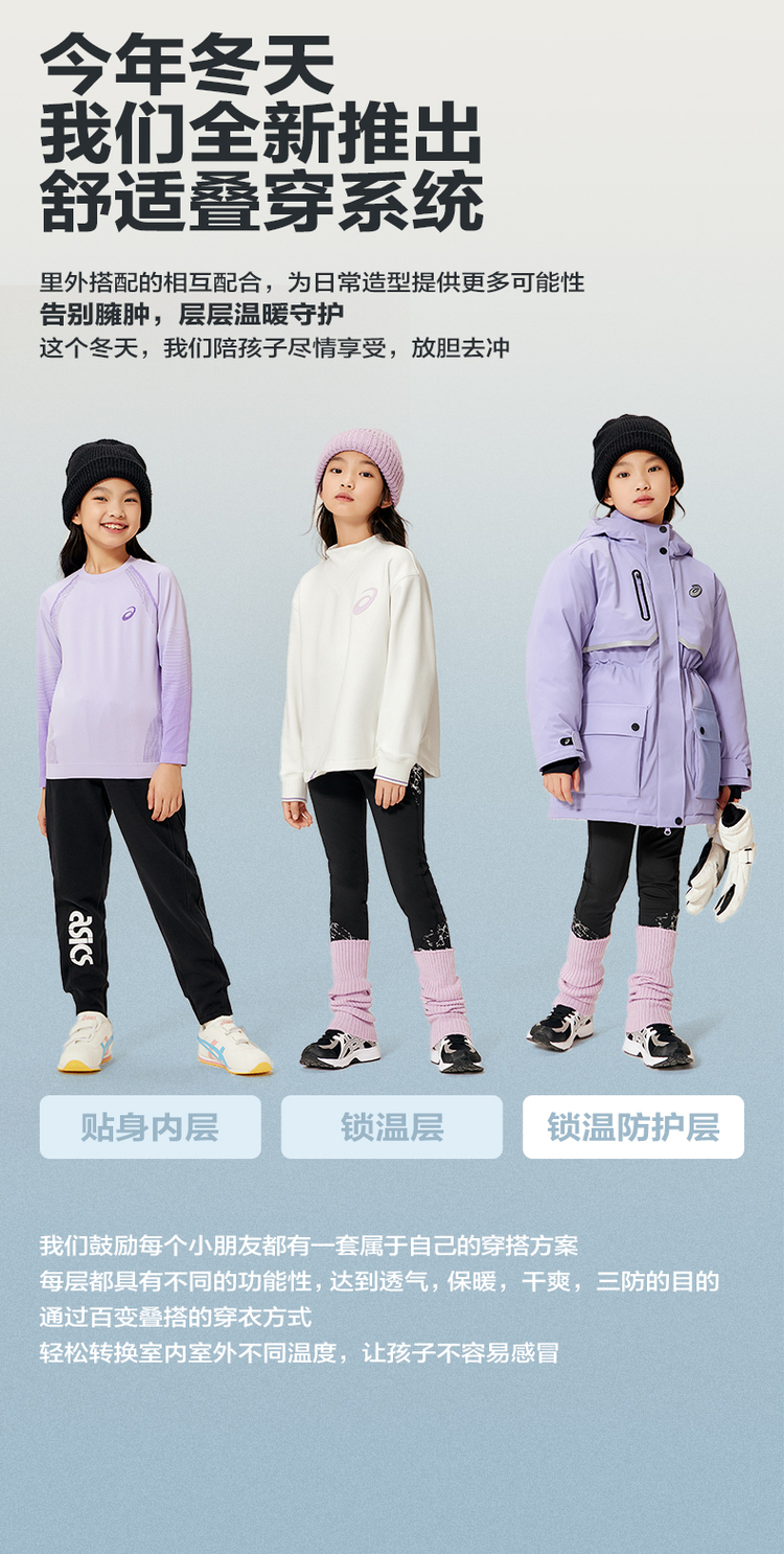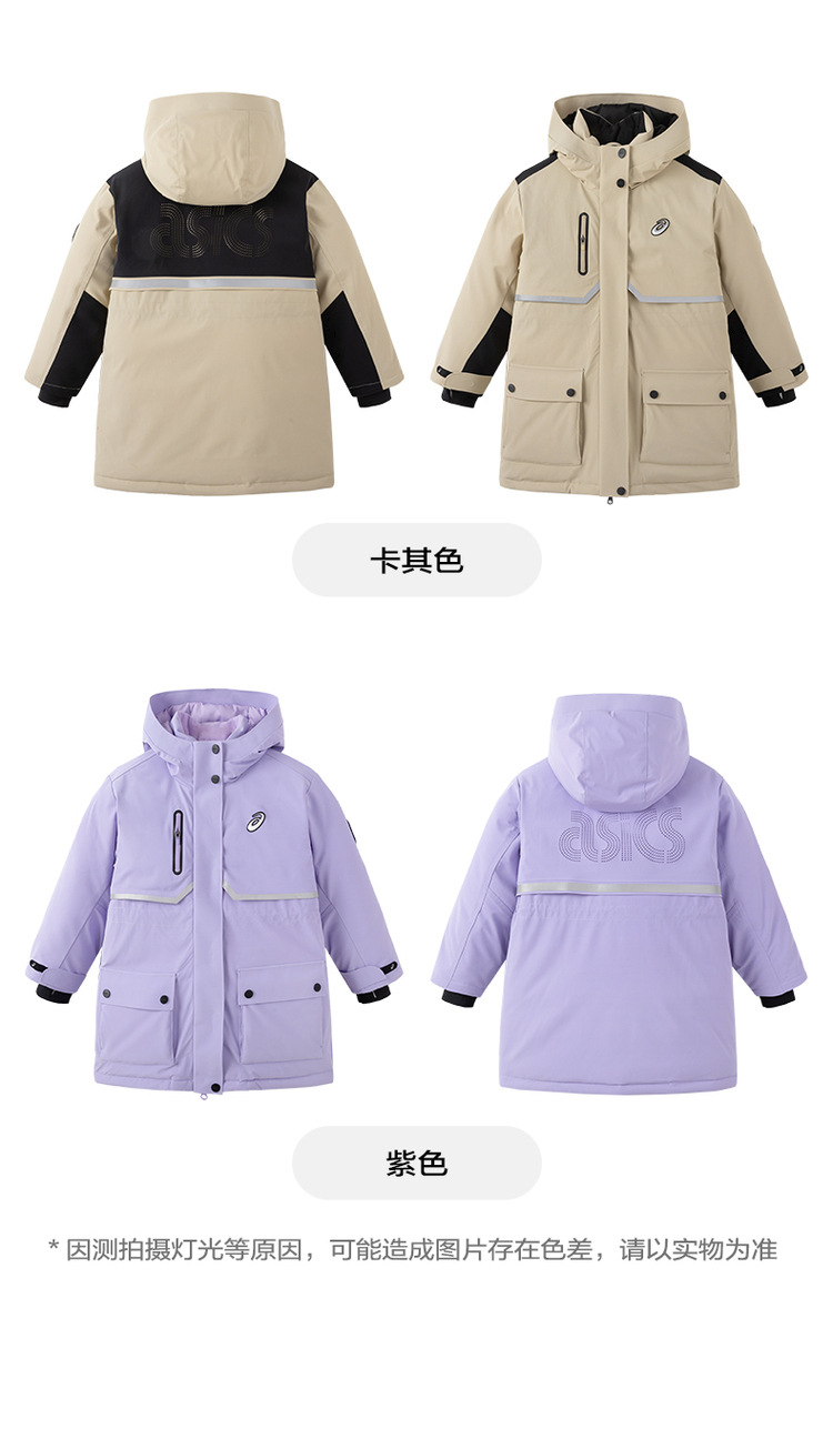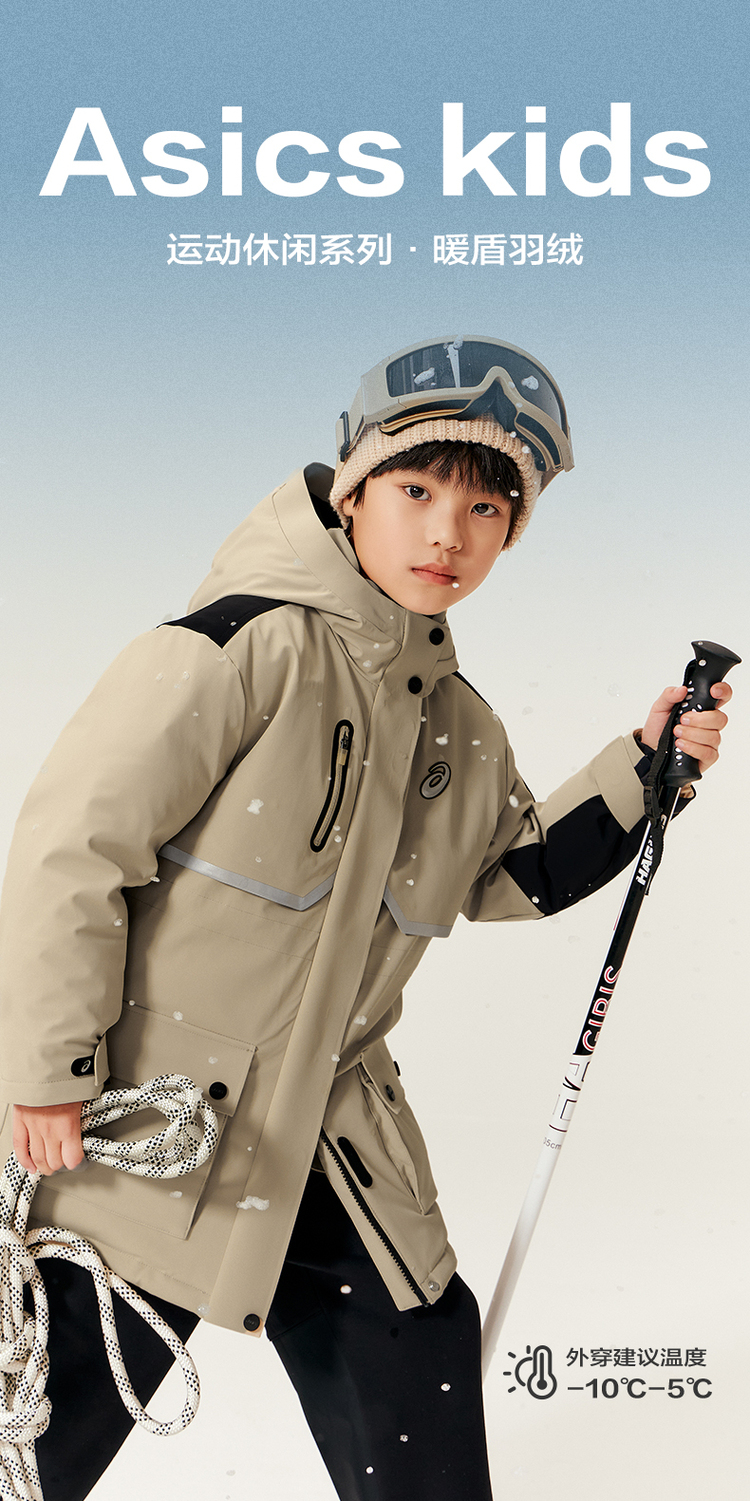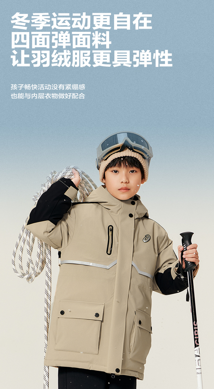 ASICS/亚瑟士童装2023年秋冬男女儿童宽松保暖三防梭织羽绒服