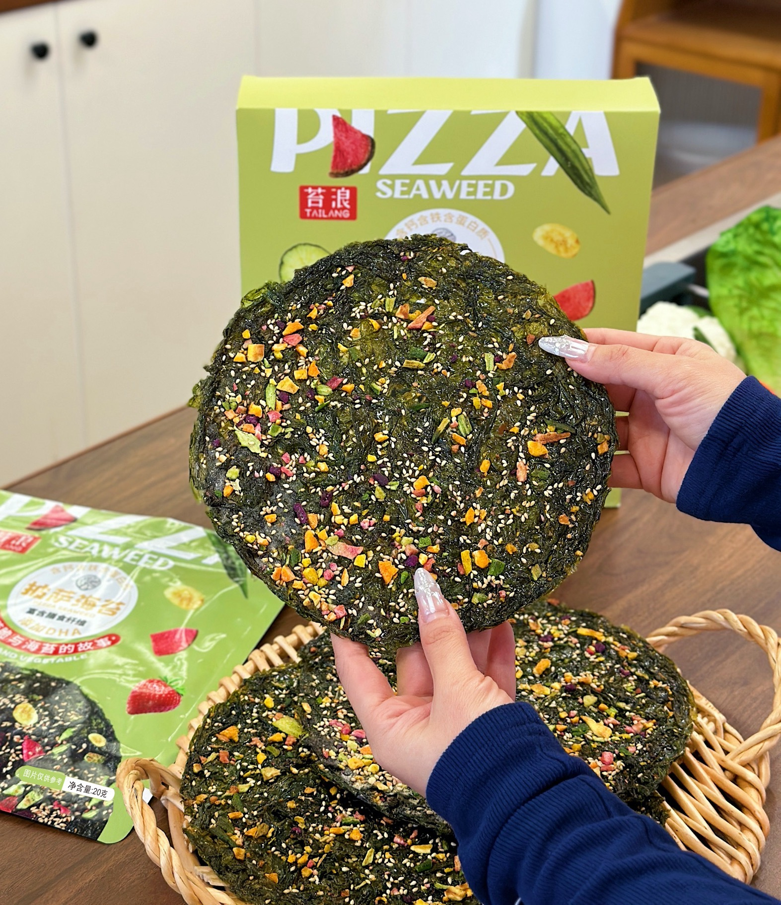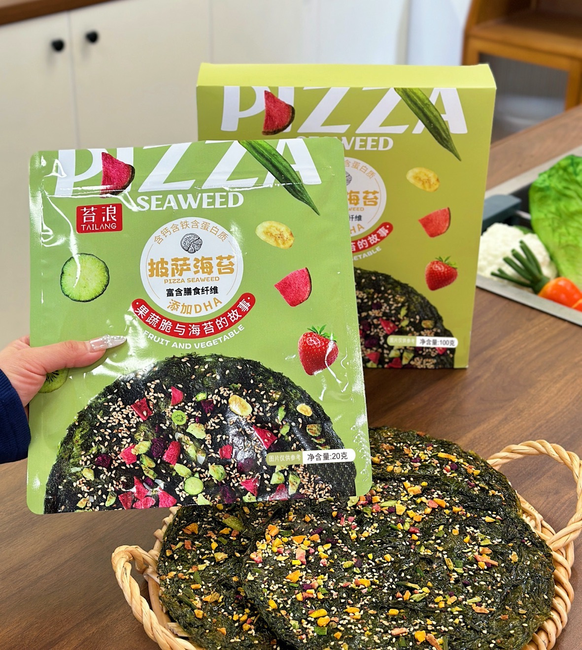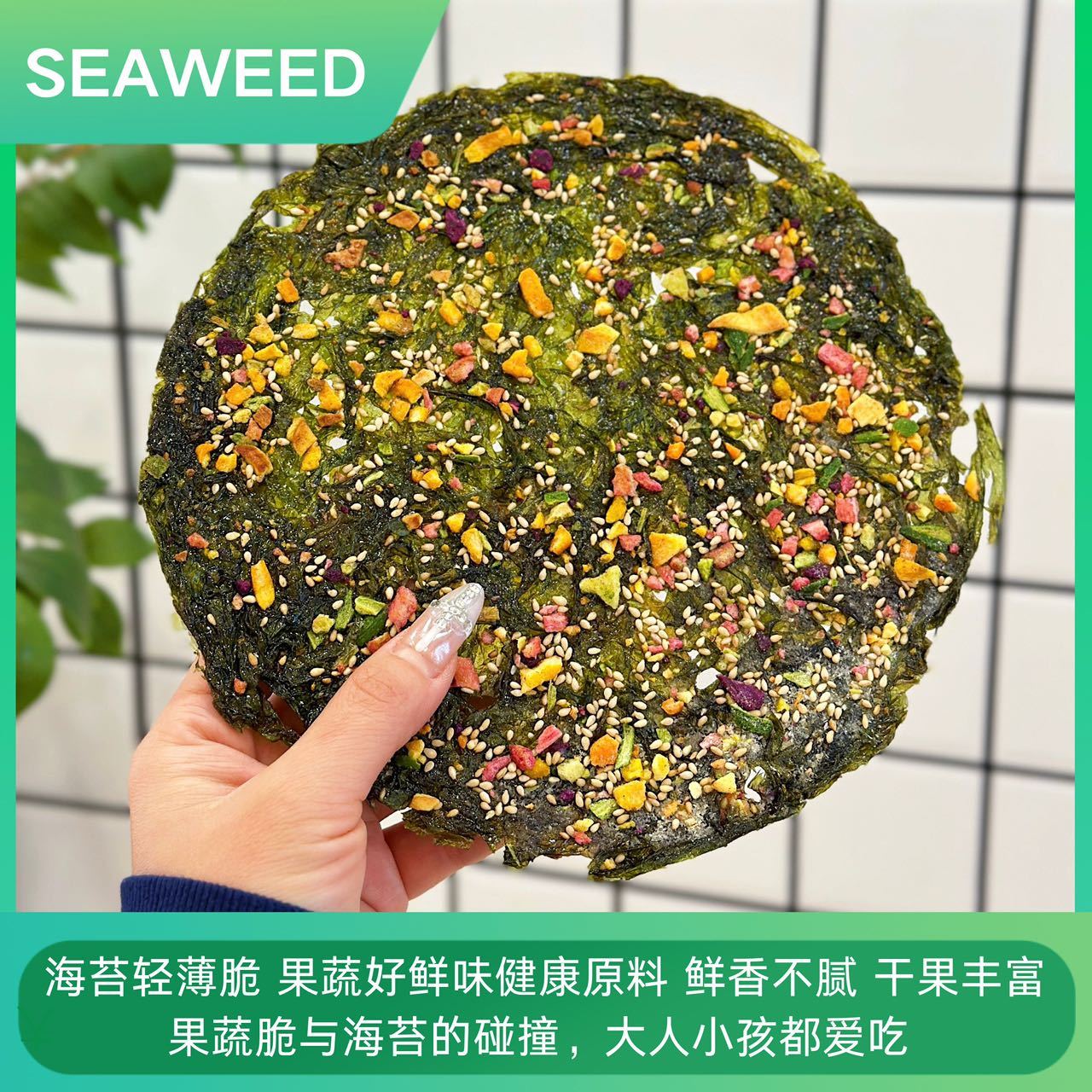 ² 49.9元/10片【比脸大的果蔬脆披萨海苔】搭配丰富果蔬 100g /5片/盒 HM02-CRMM-BP