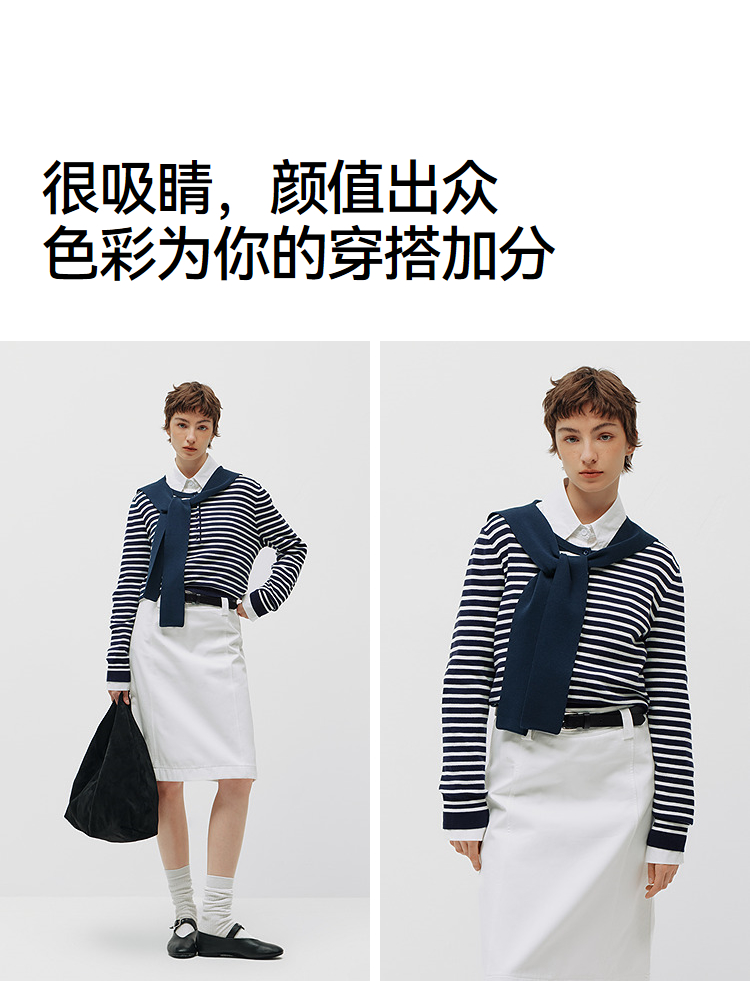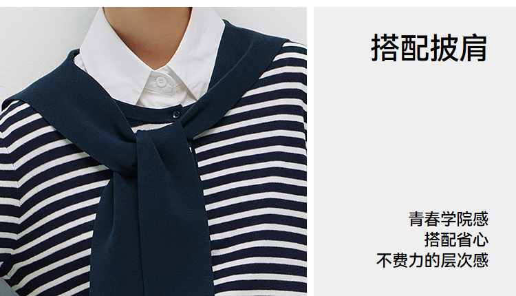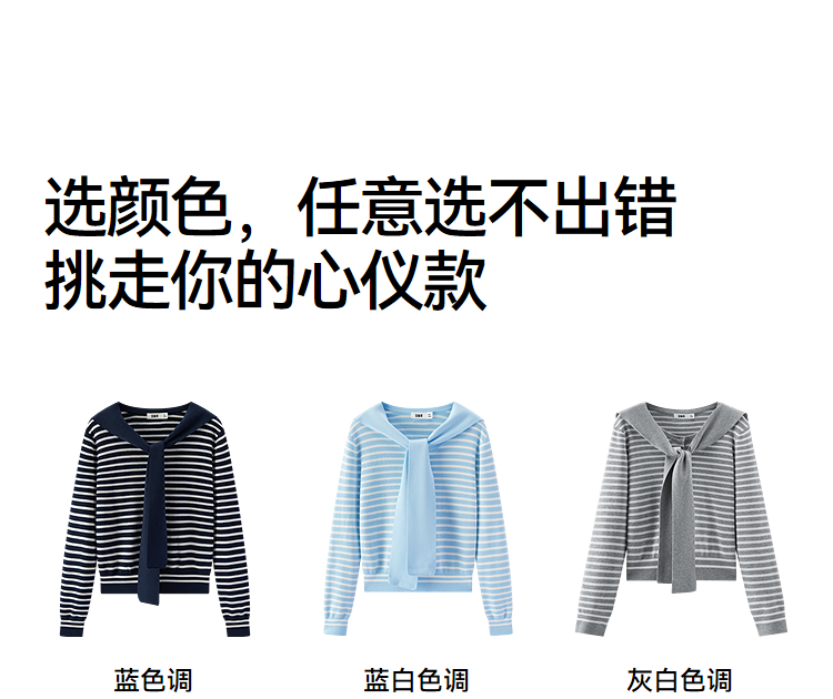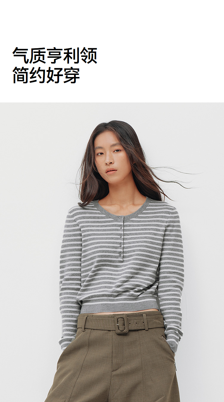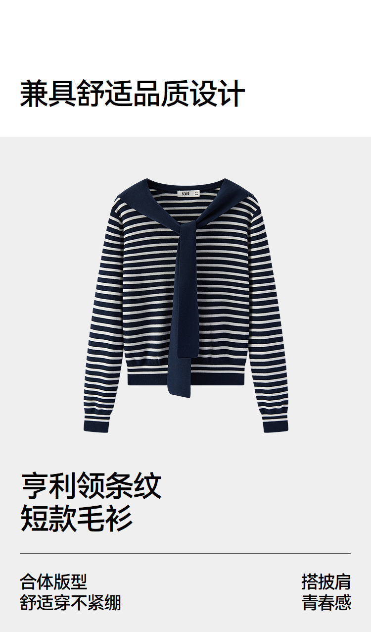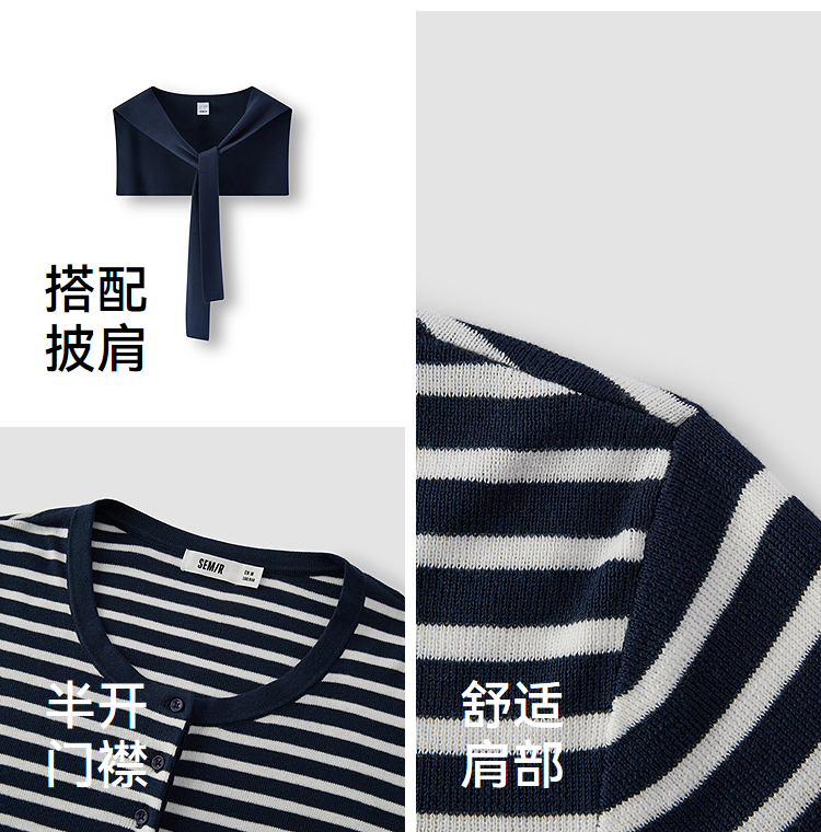 商场同款|森马针织衫女春季短款亨利领条纹毛衫披肩2026新款上衣