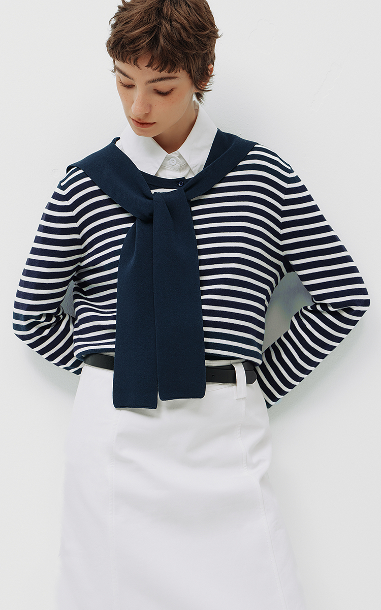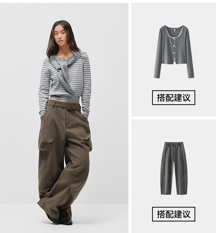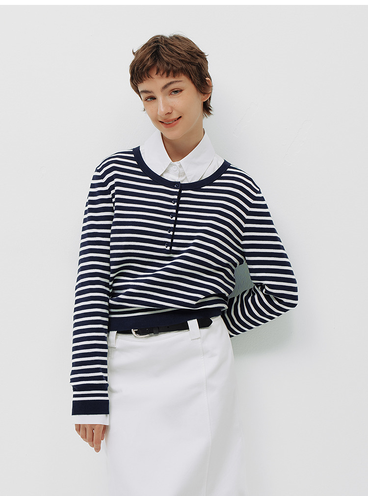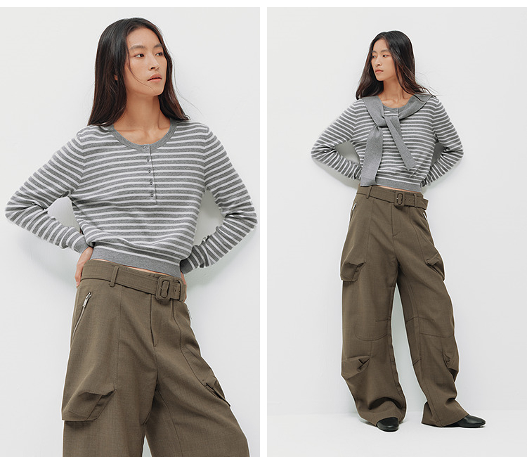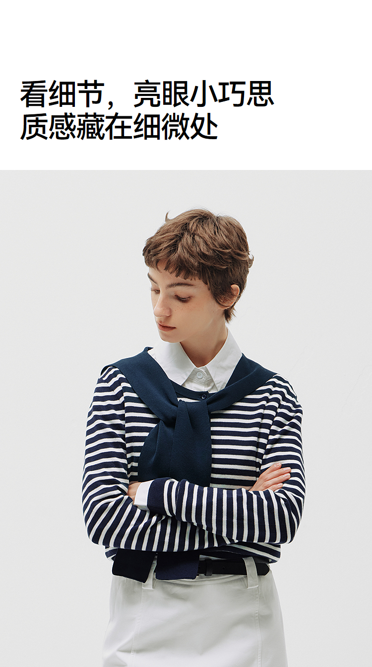 商场同款|森马针织衫女春季短款亨利领条纹毛衫披肩2026新款上衣