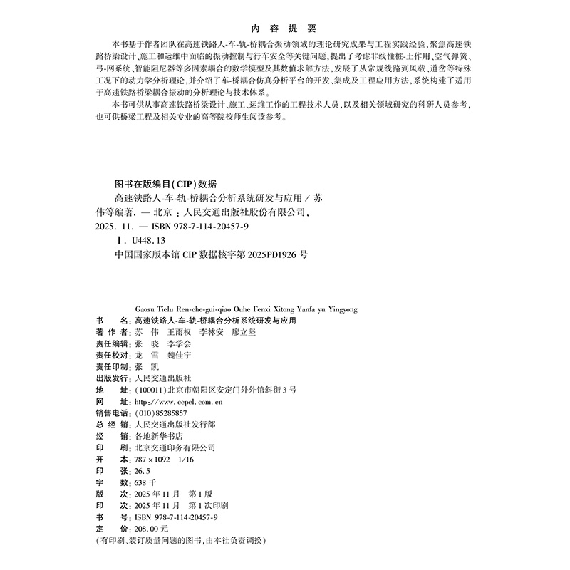 书名:高速铁路人-车-轨-桥耦合分析系统研发与应用