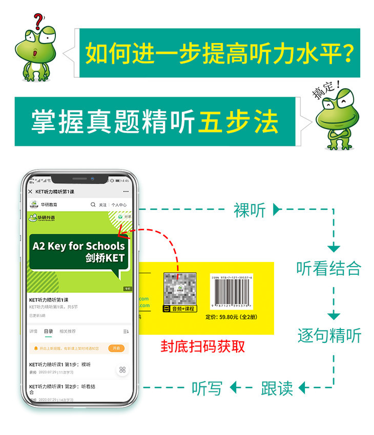 3.内文扫码在线听听力,也可封底扫码下载全书音频,灵活选择;
