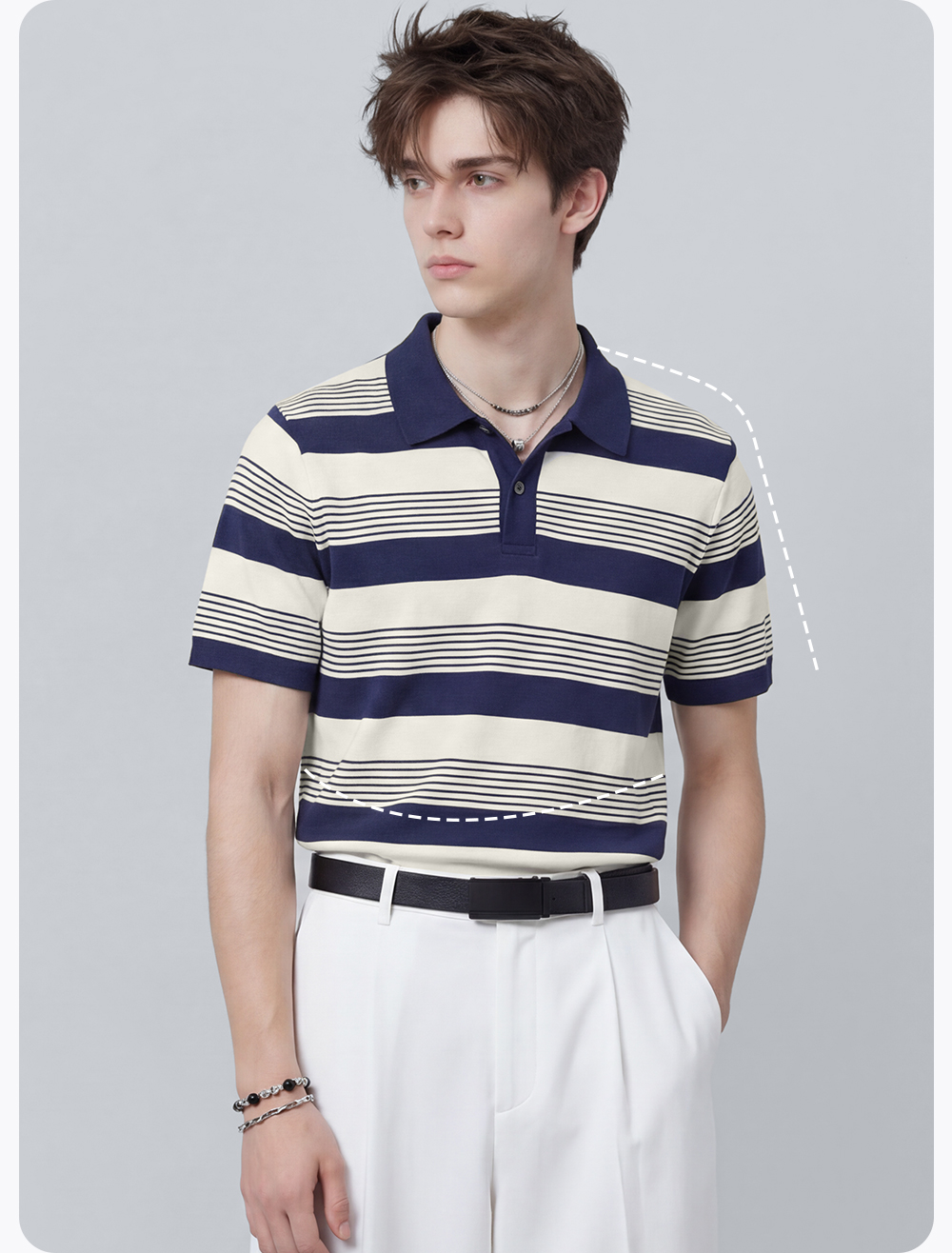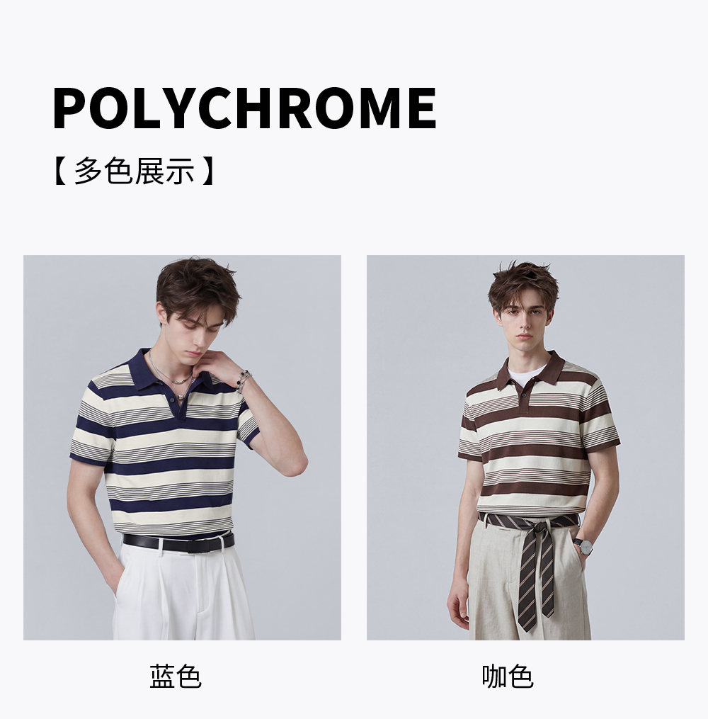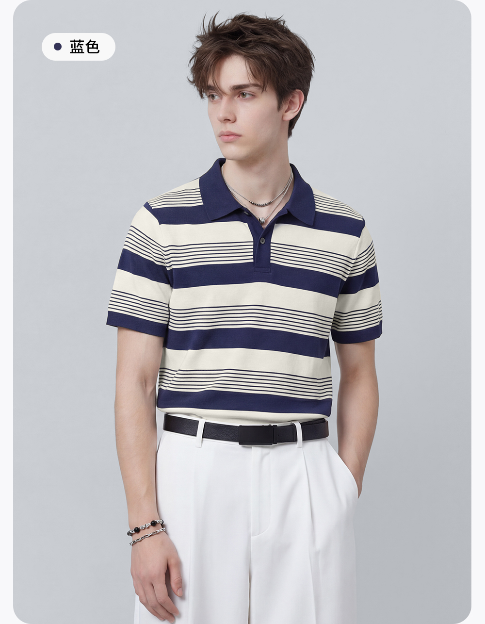 【弹力舒适】圣得西条纹短袖男款polo衫2026新款春季商务通勤上衣