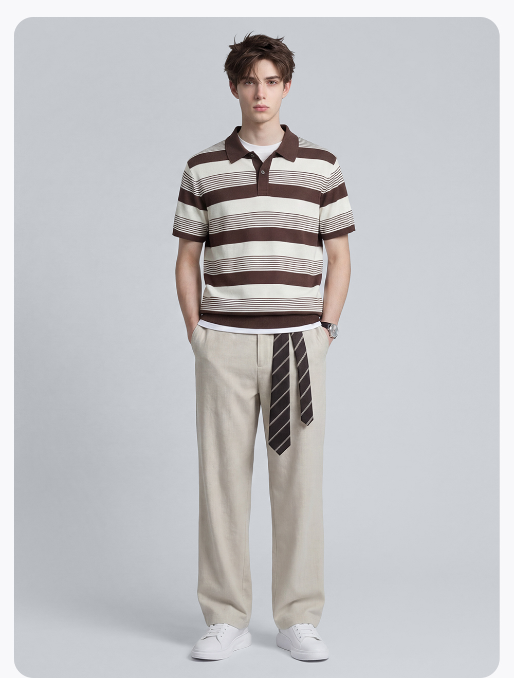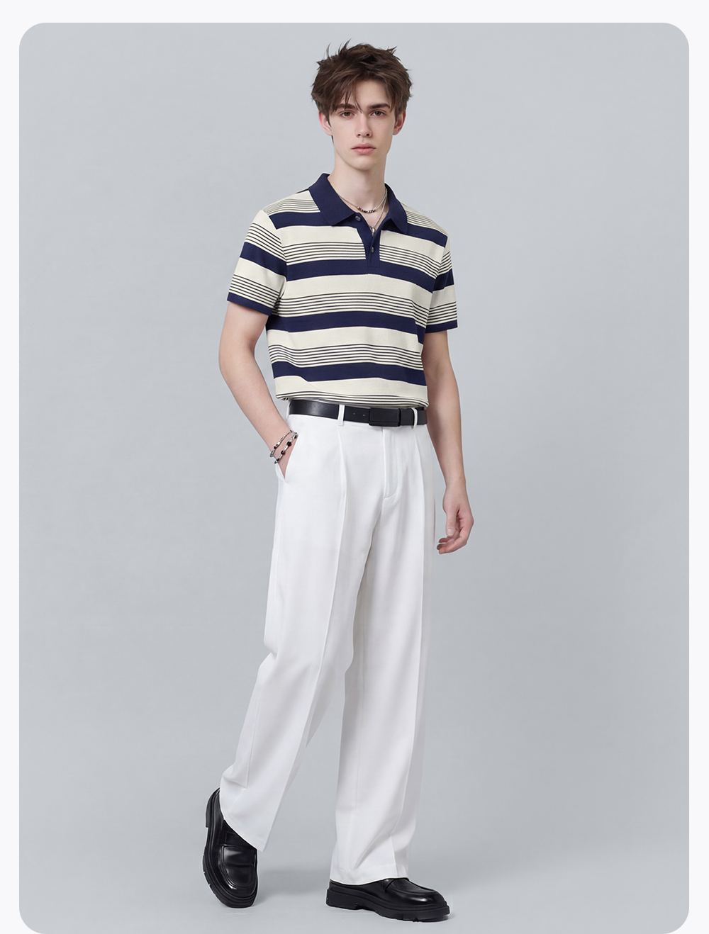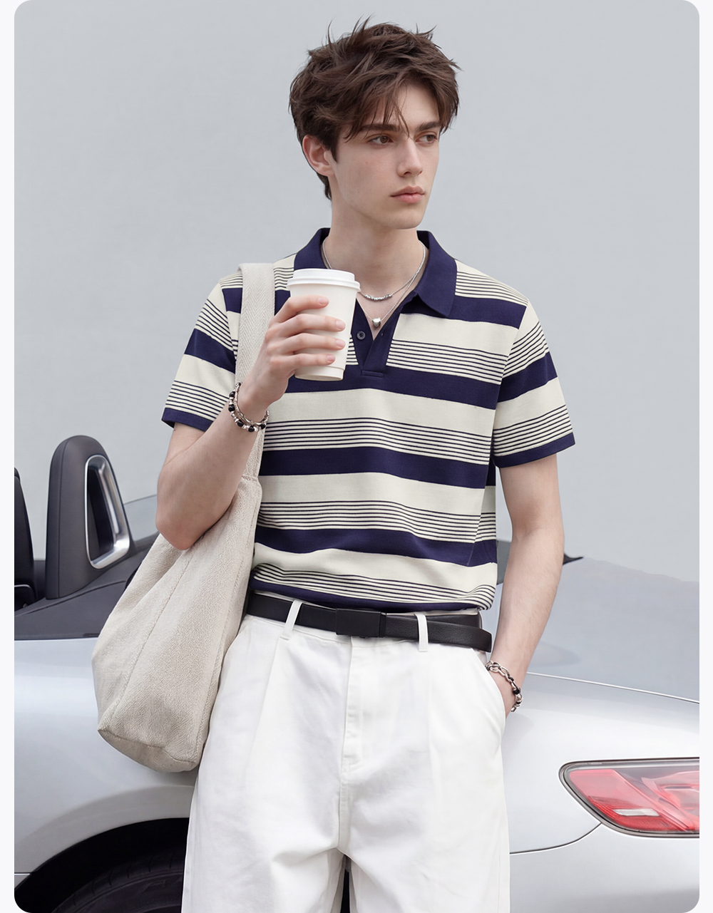 【弹力舒适】圣得西条纹短袖男款polo衫2026新款春季商务通勤上衣