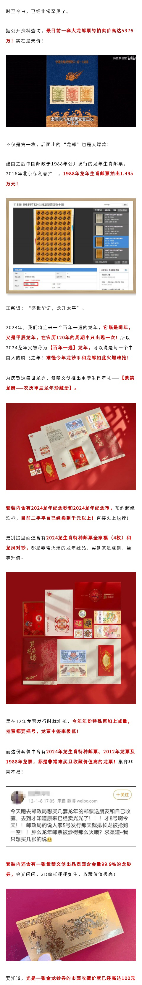 【下单2-5天内发货】紫禁龙腾-农历甲辰龙年珍藏册 | 龙年生肖年礼 龙生肖特种邮票/龙年首日封/小全张/龙年纪念币/纪念钞