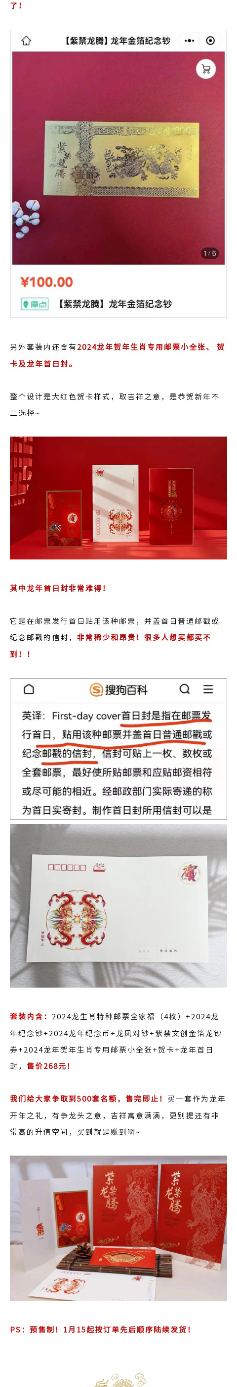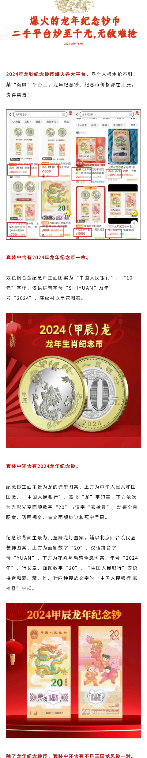 【规格】龙票4枚+纪念钞1张+纪念币1枚+龙凤钞1对+小全张1张+贺卡1张+龙钞券1张