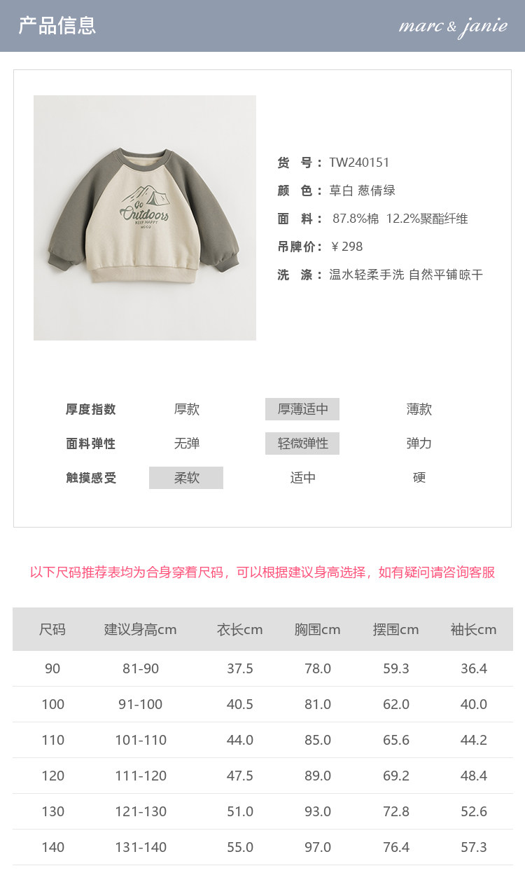 马克珍妮男童山系户外拼接运动卫衣 儿童外套纯棉上衣春装240151