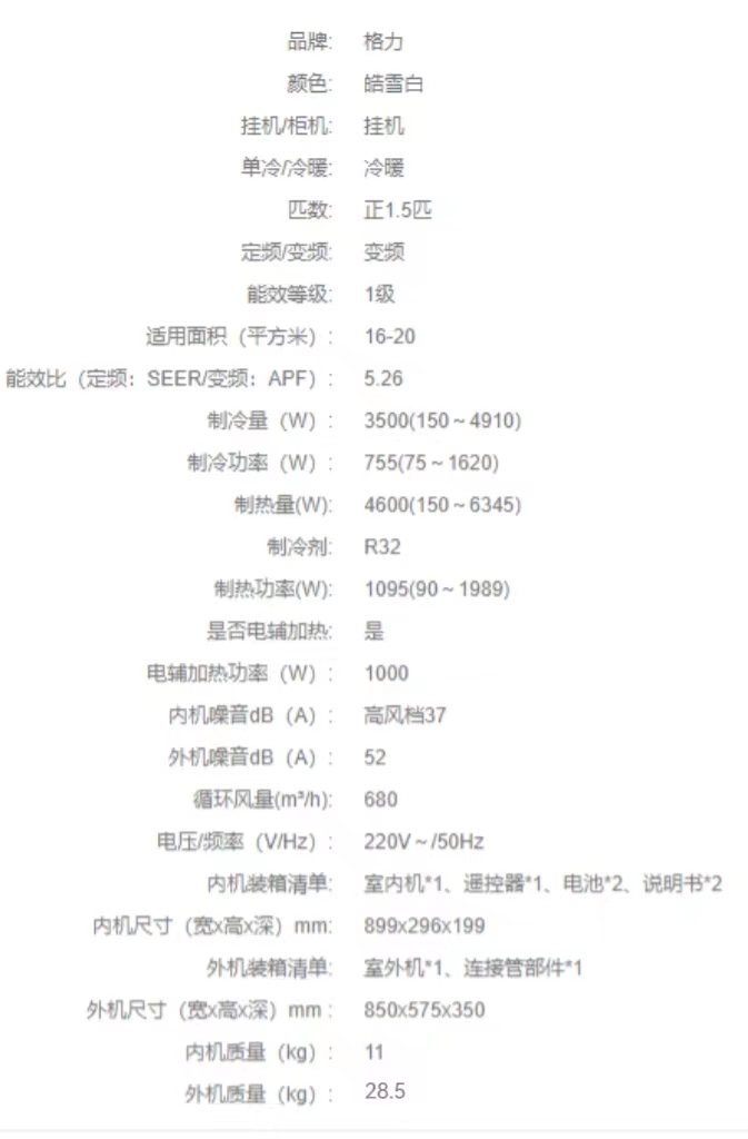 格力·冷静王变频冷暖正1.5匹1级能效挂机空调 KFR-35GW/(35549)FNhAc-B1(WIFI)(皓雪白)