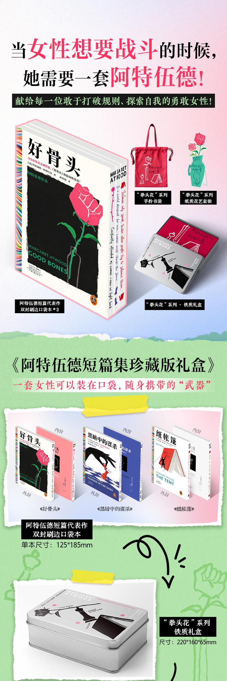 【阿特伍德短篇集珍藏礼盒】3本刷边口袋本+定制铁盒+书袋+纸艺花