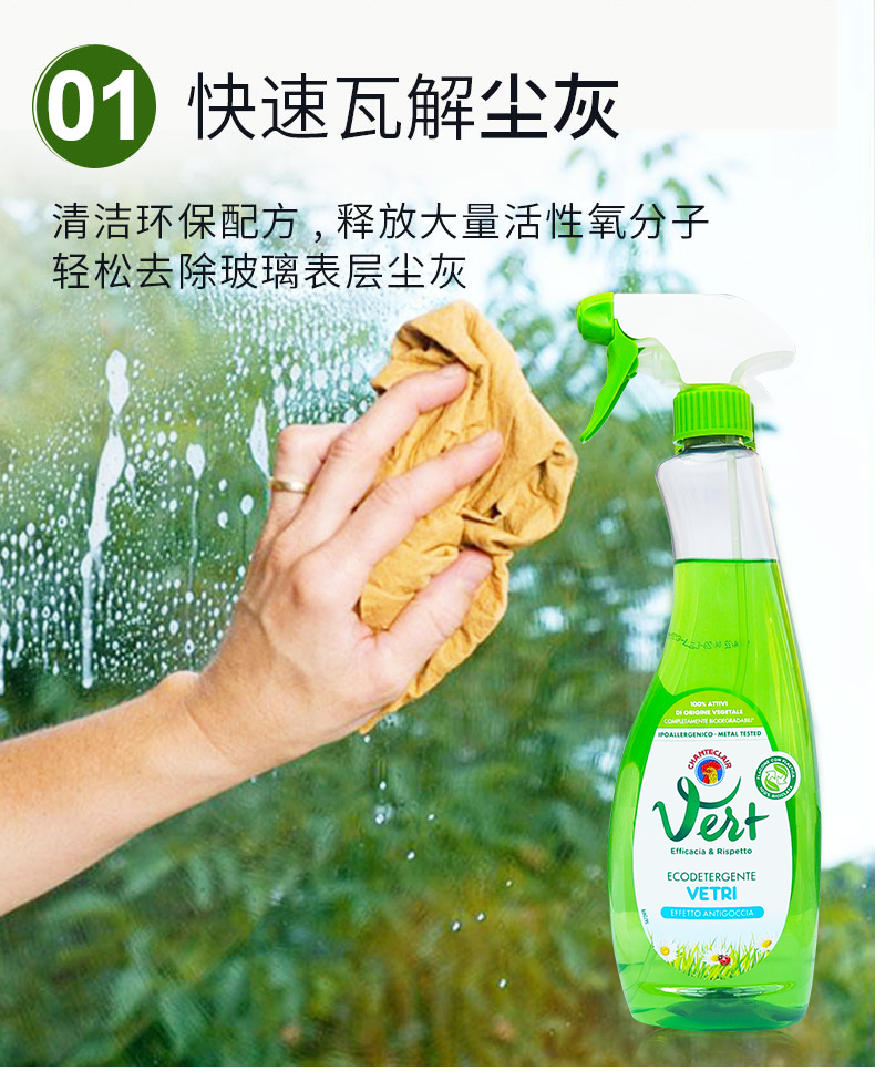 【中欧班列精选2瓶】意大利玻璃清洁剂 原装进口大公鸡管家公鸡头玻璃清洁剂 625ml ON