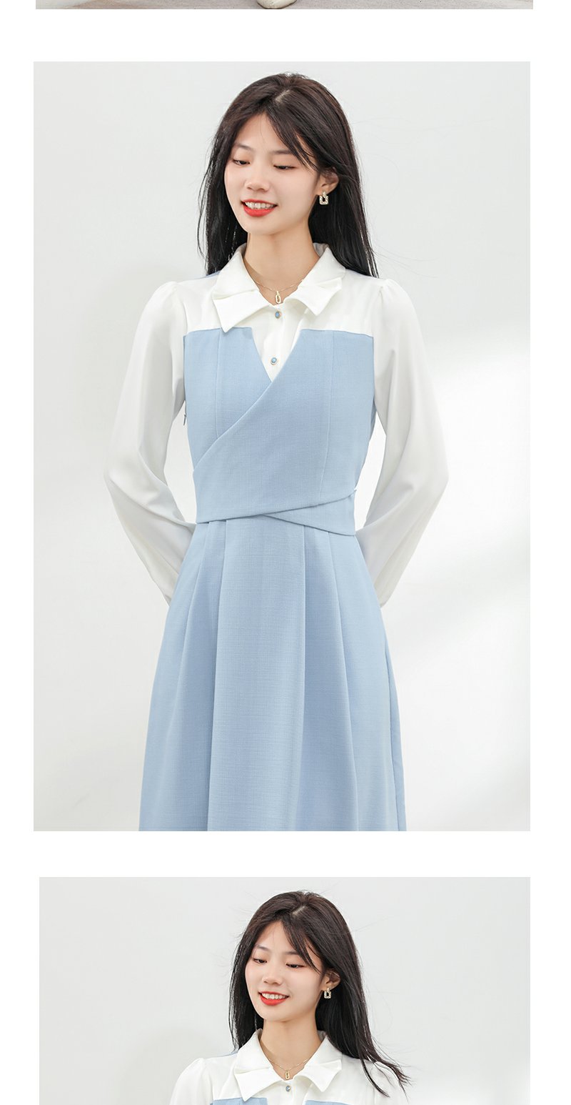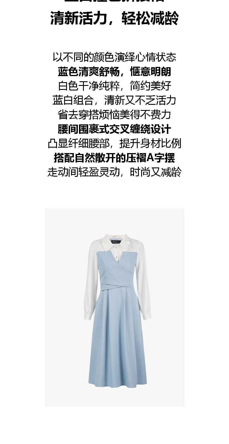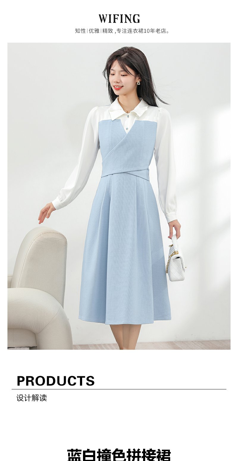 未风蓝色假两件连衣裙女早春2025春季新款女装气质小香风显瘦裙子