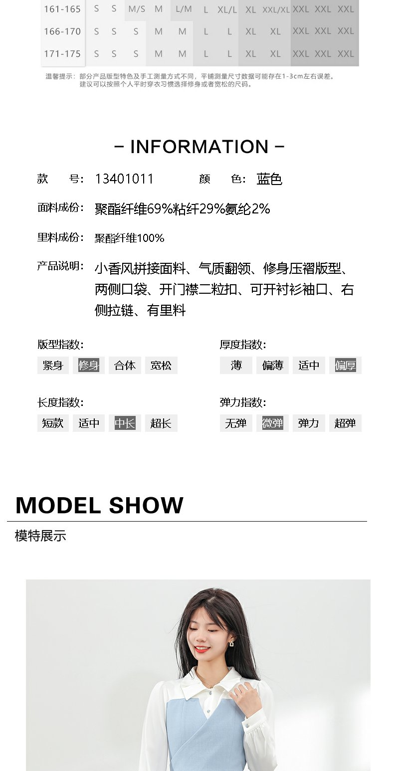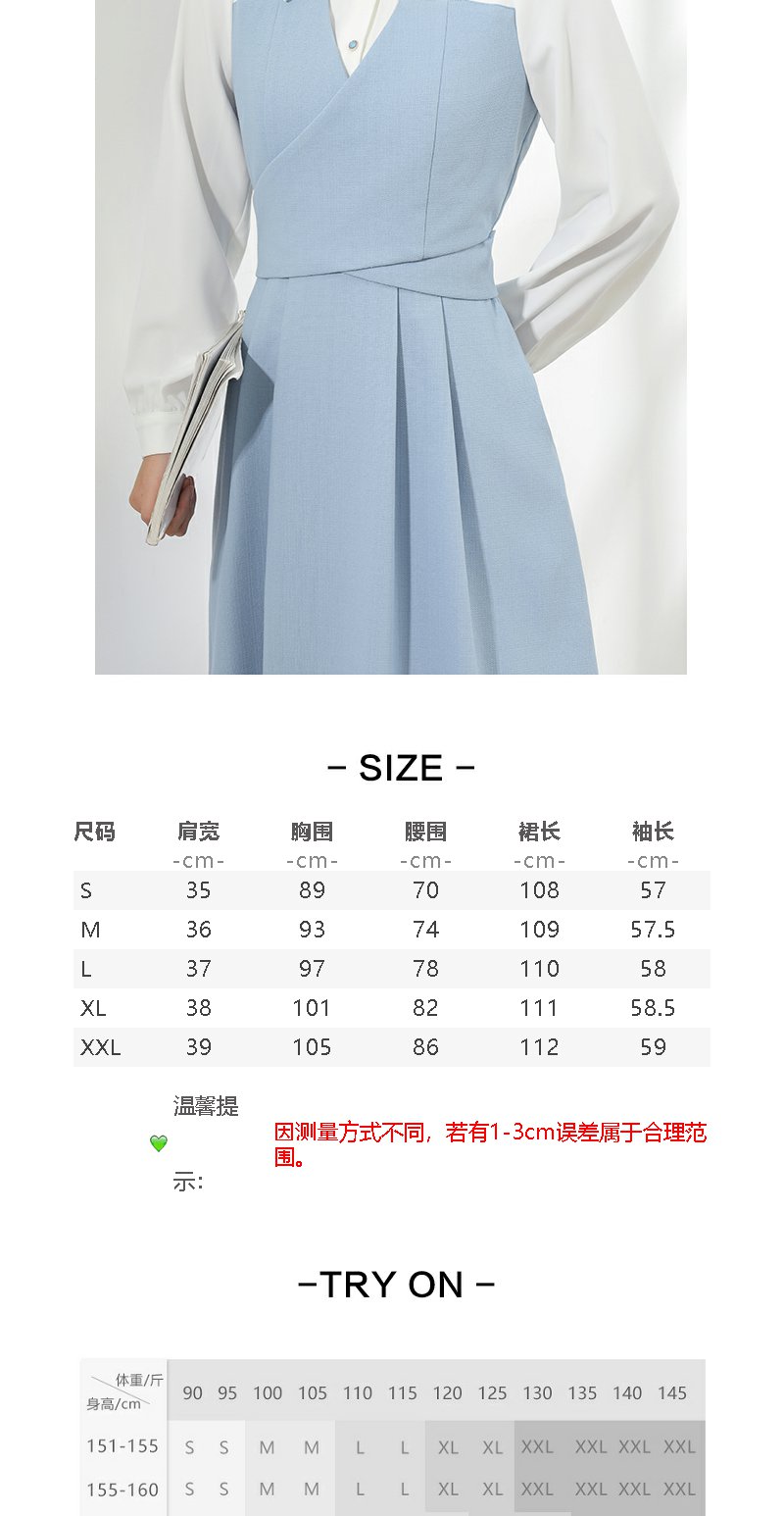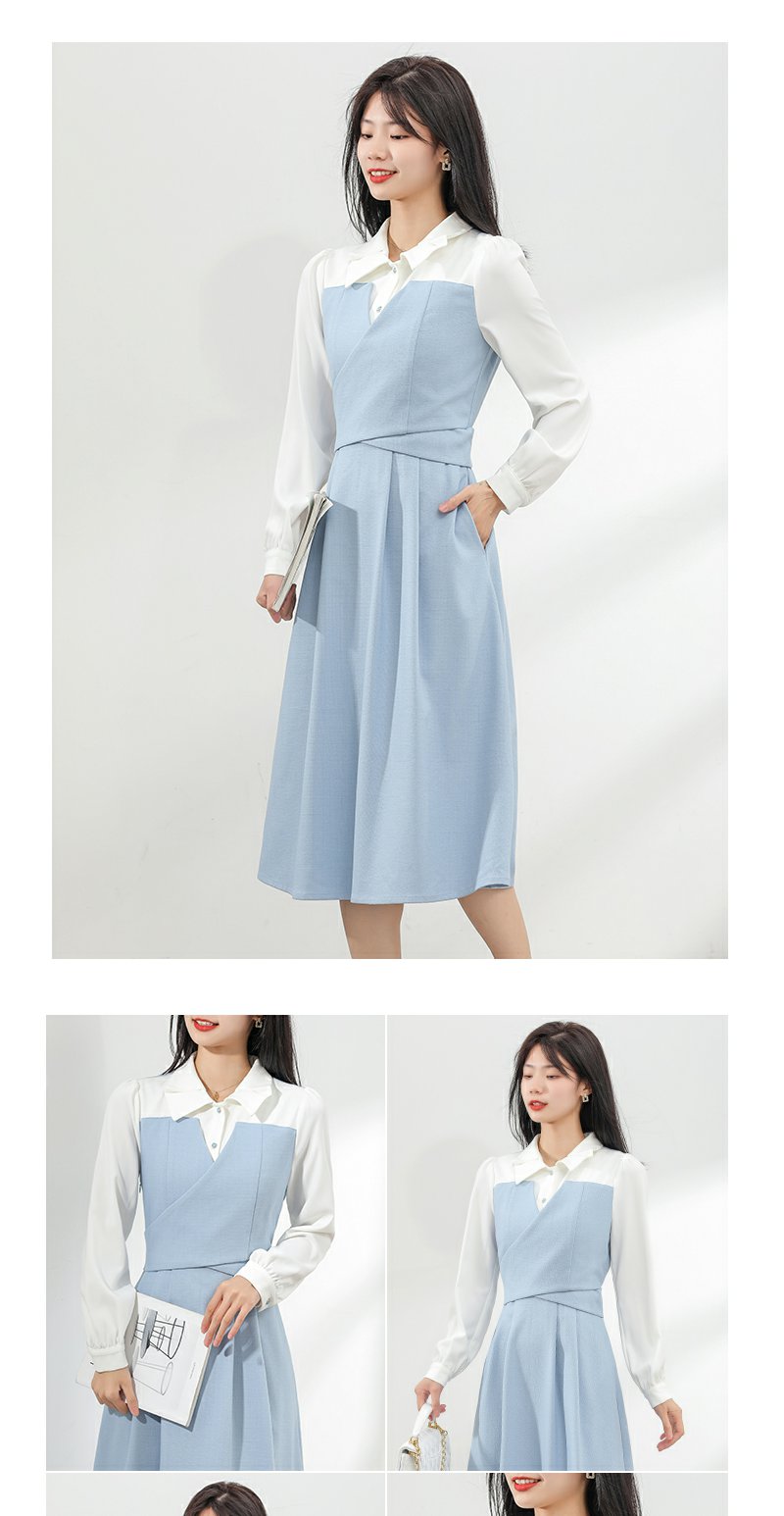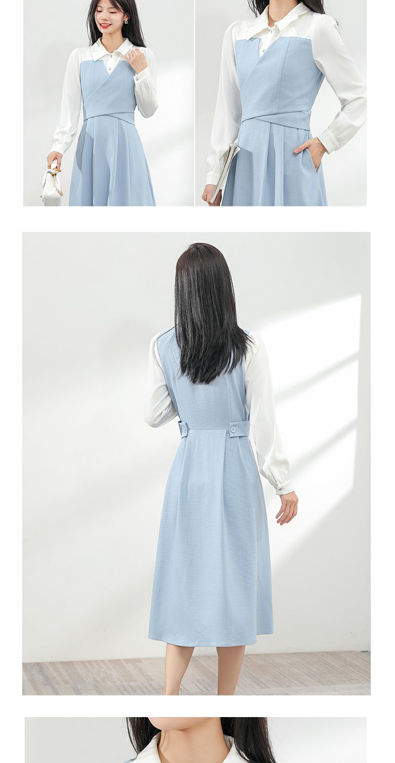 未风蓝色假两件连衣裙女早春2025春季新款女装气质小香风显瘦裙子