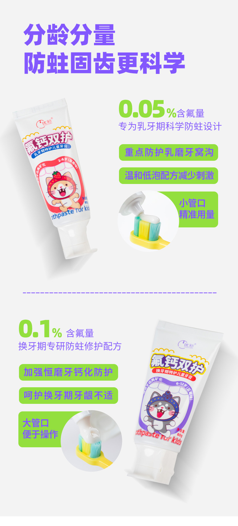 【牙医专享】氟钙双护乳牙期/换牙期分段儿童特护牙膏促进牙齿再矿化牙膏