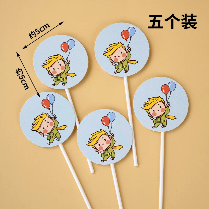 5支装 圆形 小王子气球 装饰插件 蓝色小男孩插件插卡 甜品台装饰