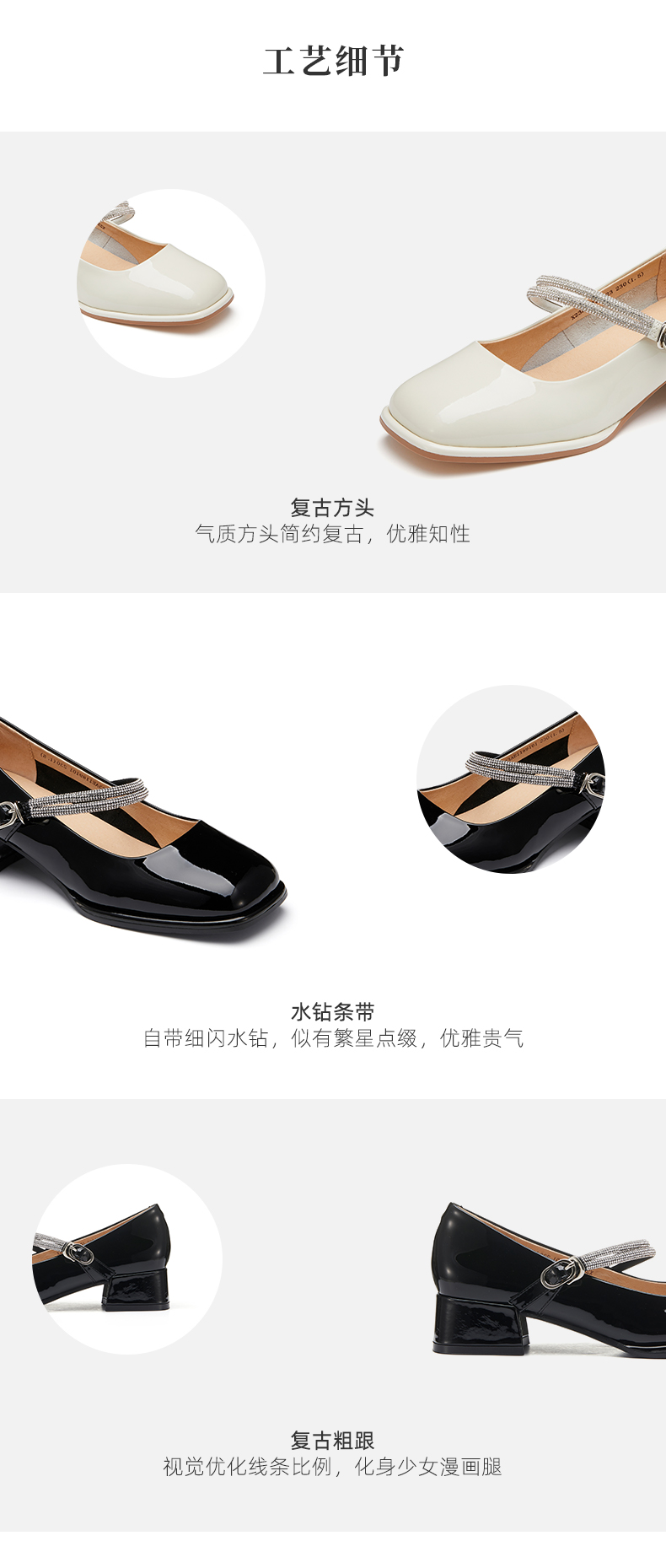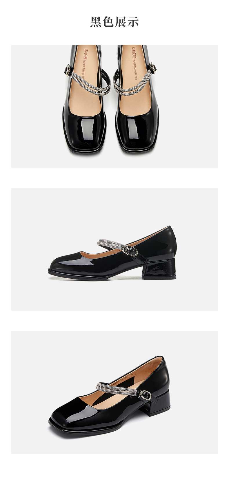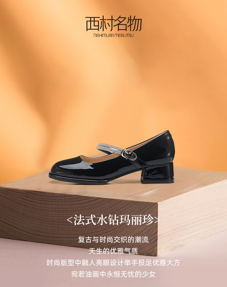 西村名物2023春季新款法式仙女玛丽珍商场同款浅口粗跟单鞋11891