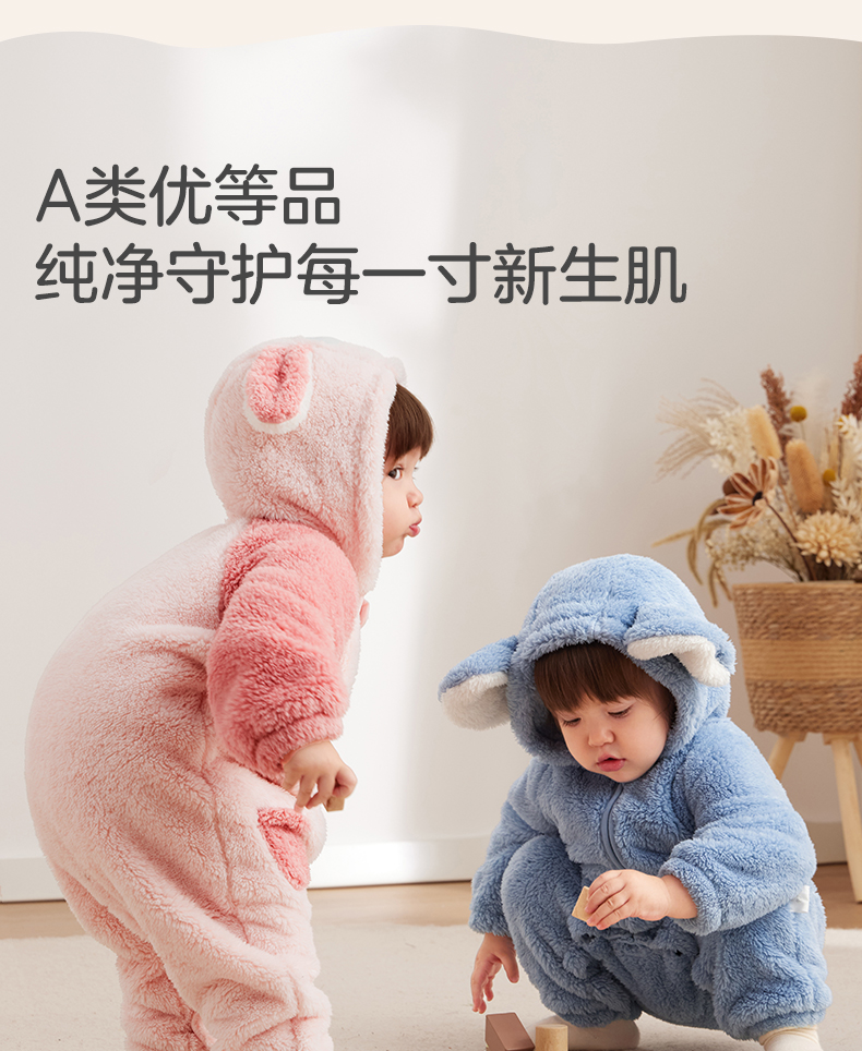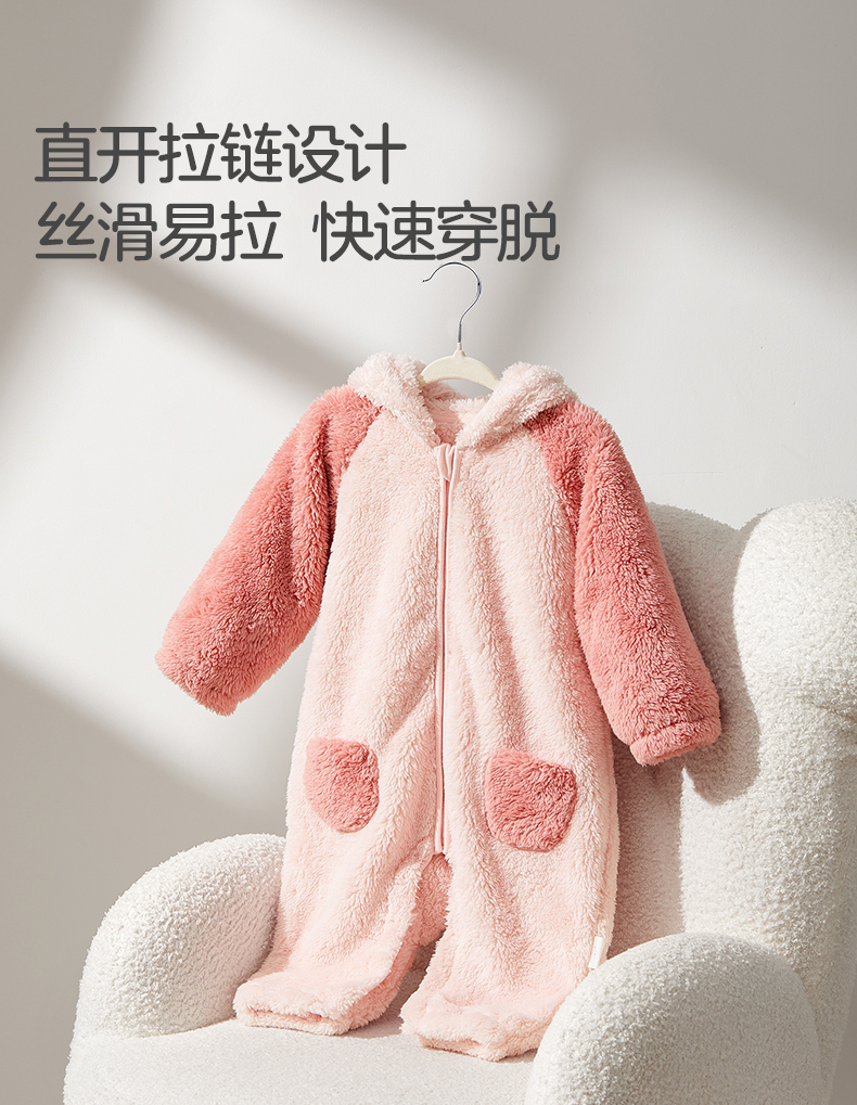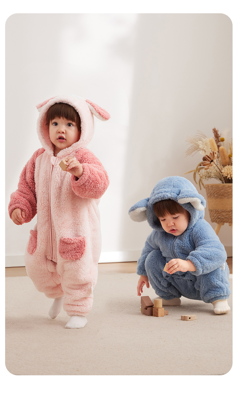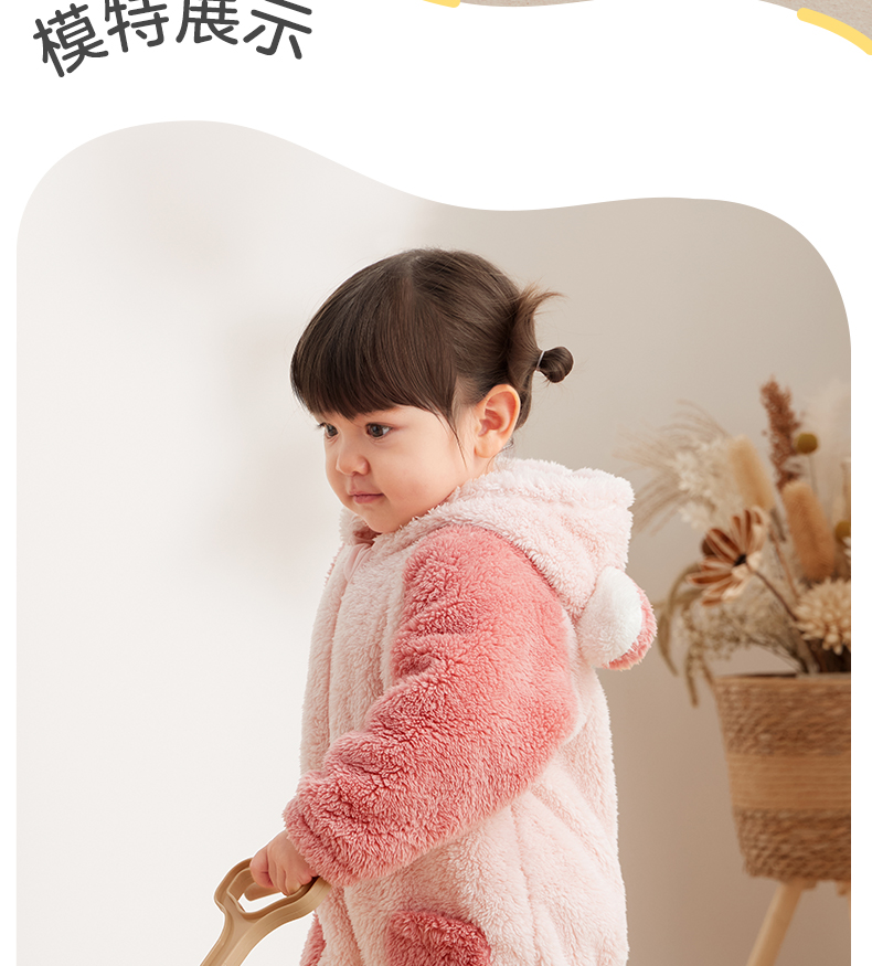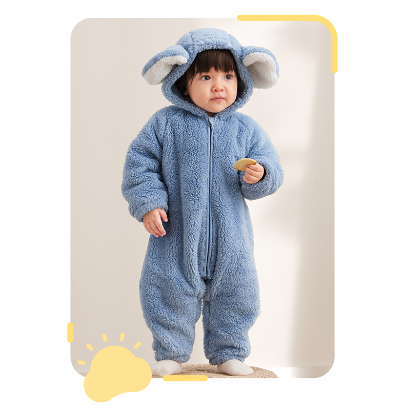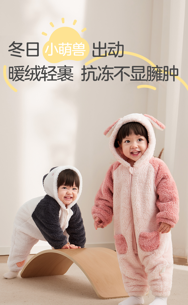 粒粒阳光童装婴儿连体衣秋冬哈衣爬服加厚暖绒宝宝外出衣