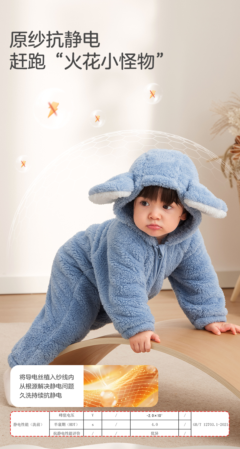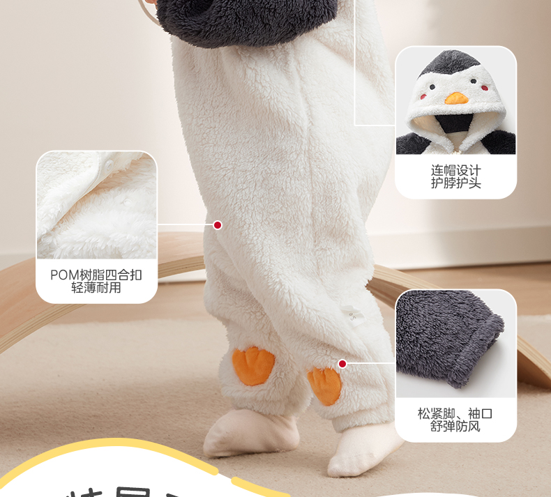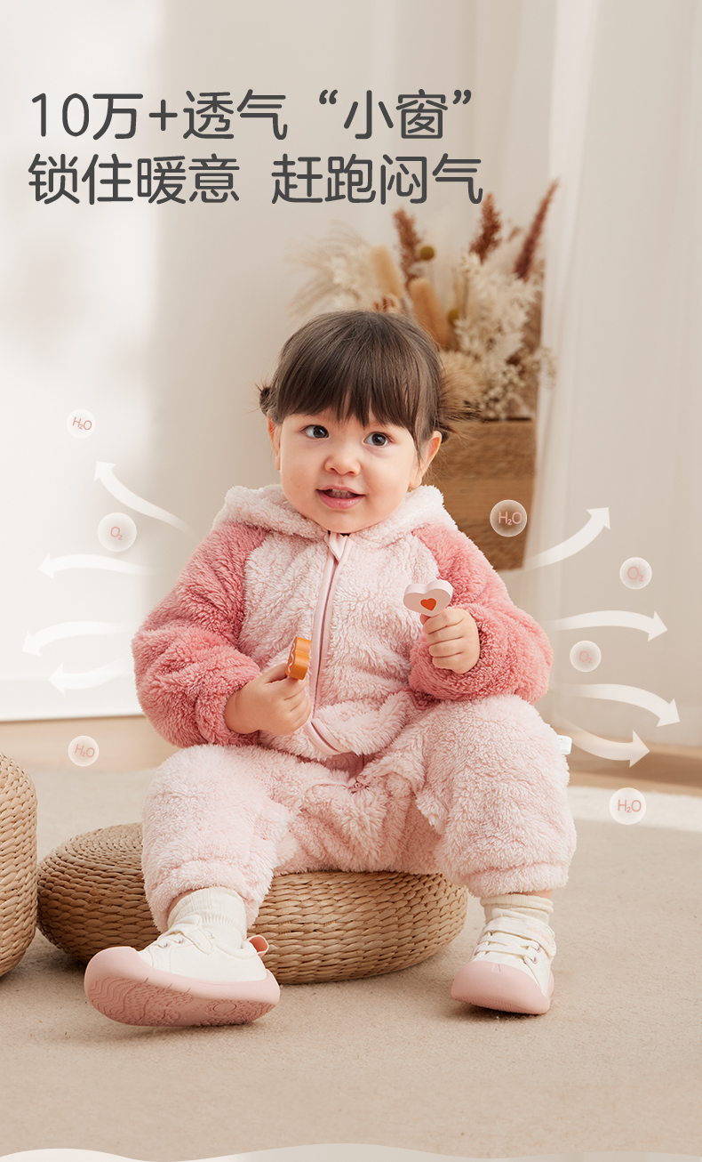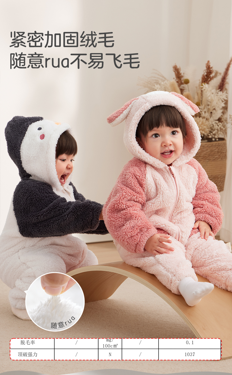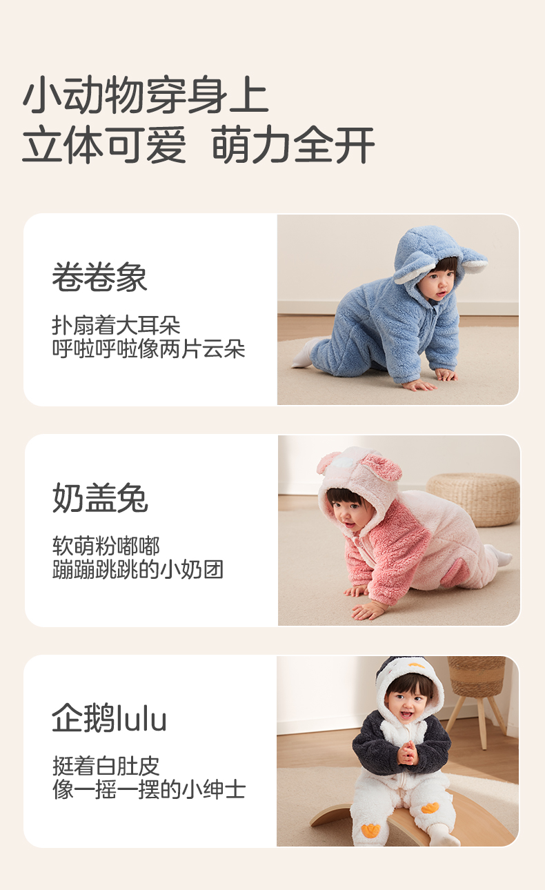 粒粒阳光童装婴儿连体衣秋冬哈衣爬服加厚暖绒宝宝外出衣