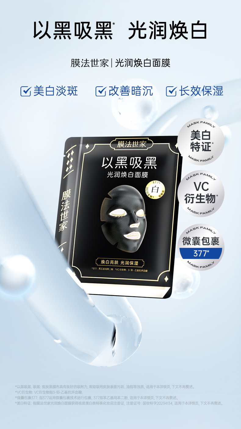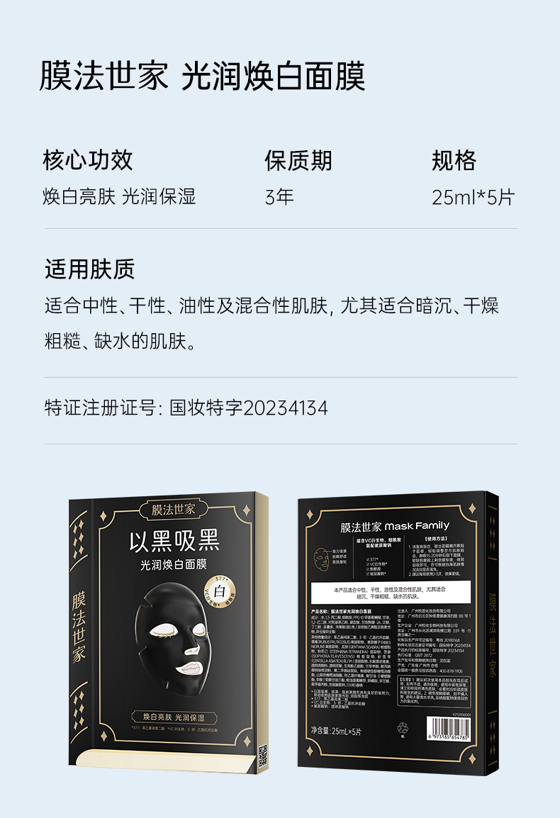 【高效美白】膜法世家以黑吸黑光润焕白面膜5片装