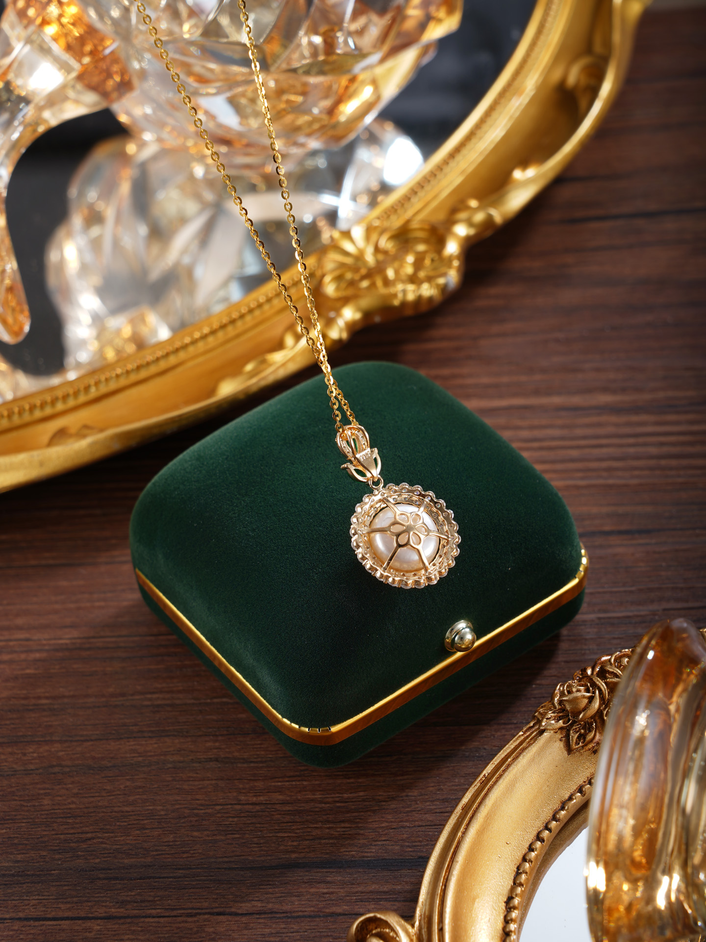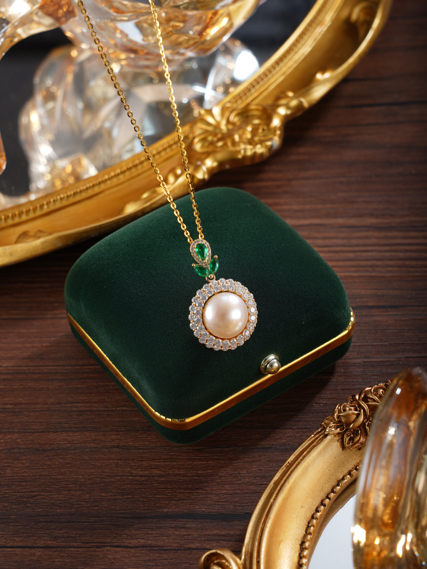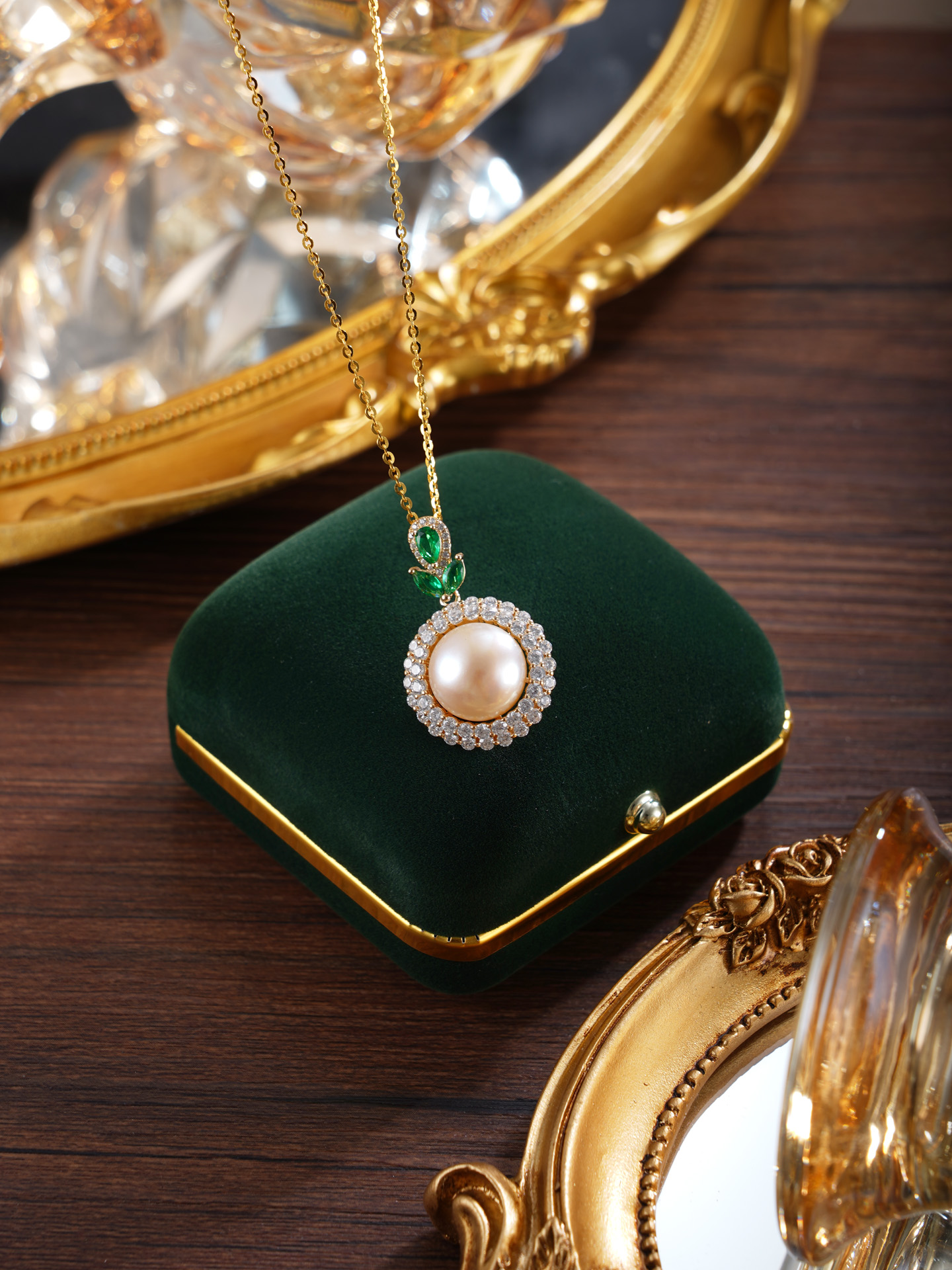 子佩集【暮光之叶】银S925珍珠惜王妃套链项链【P1776】镀金太阳花绿叶2602