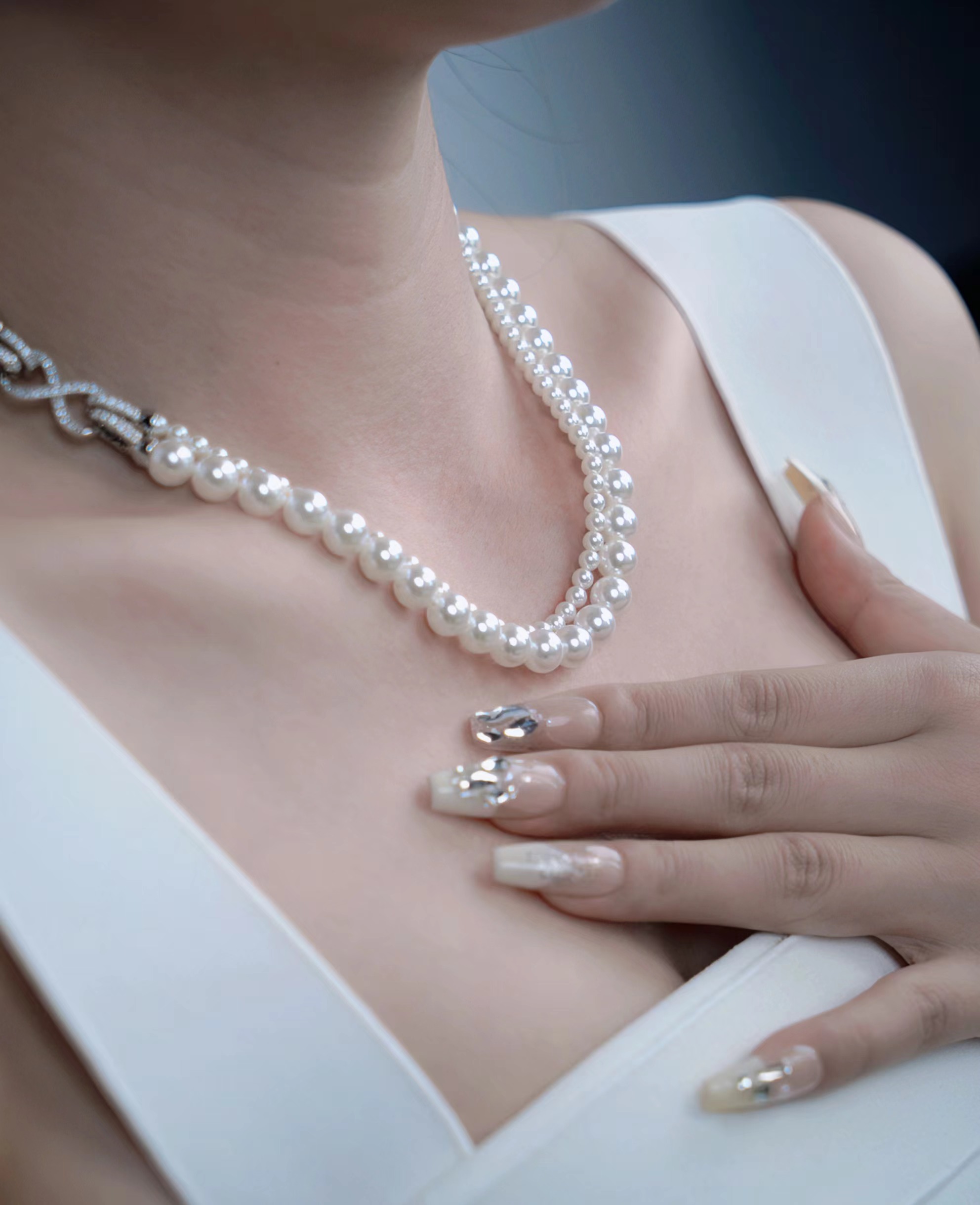 L法式可拆卸粗细叠戴可当手链白色珍珠项链
