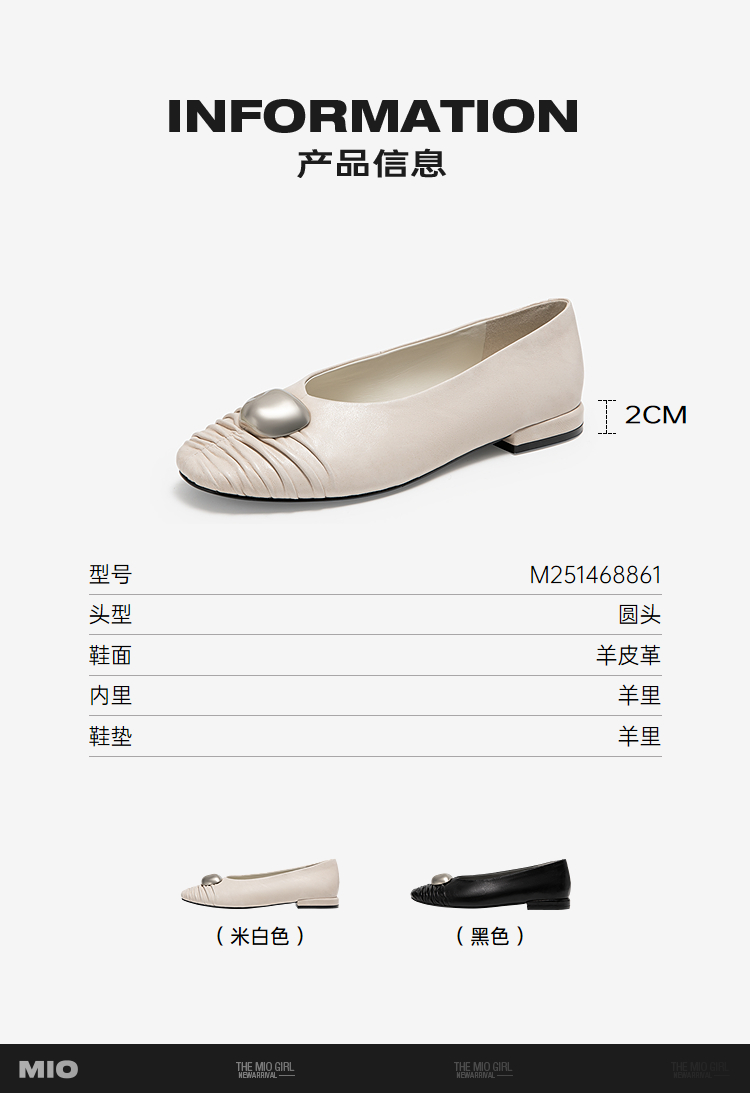 MIO米奥低跟圆头芭蕾风浅口单鞋轻便舒适复古女鞋M251468861