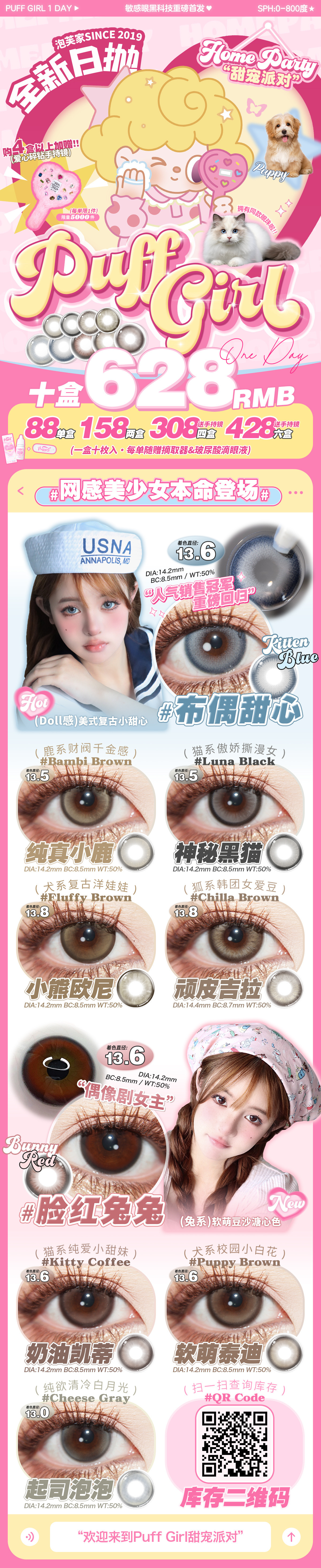 PuffGirl日抛活动·0-800度(无525/575)·布偶甜心&纯真小鹿&神秘黑猫&小熊欧尼&顽皮吉拉&脸红兔兔&奶油凯蒂&软萌泰迪&起司泡泡