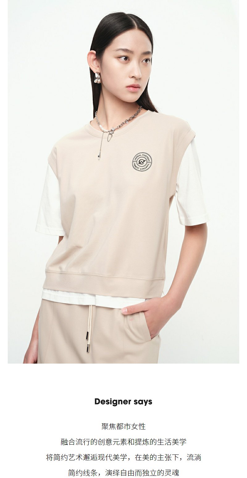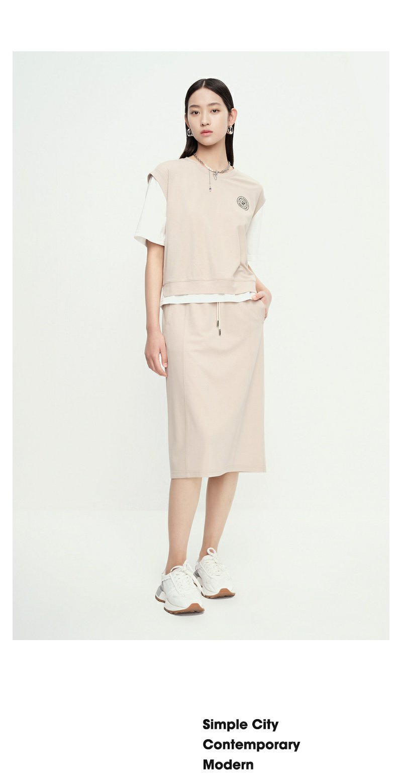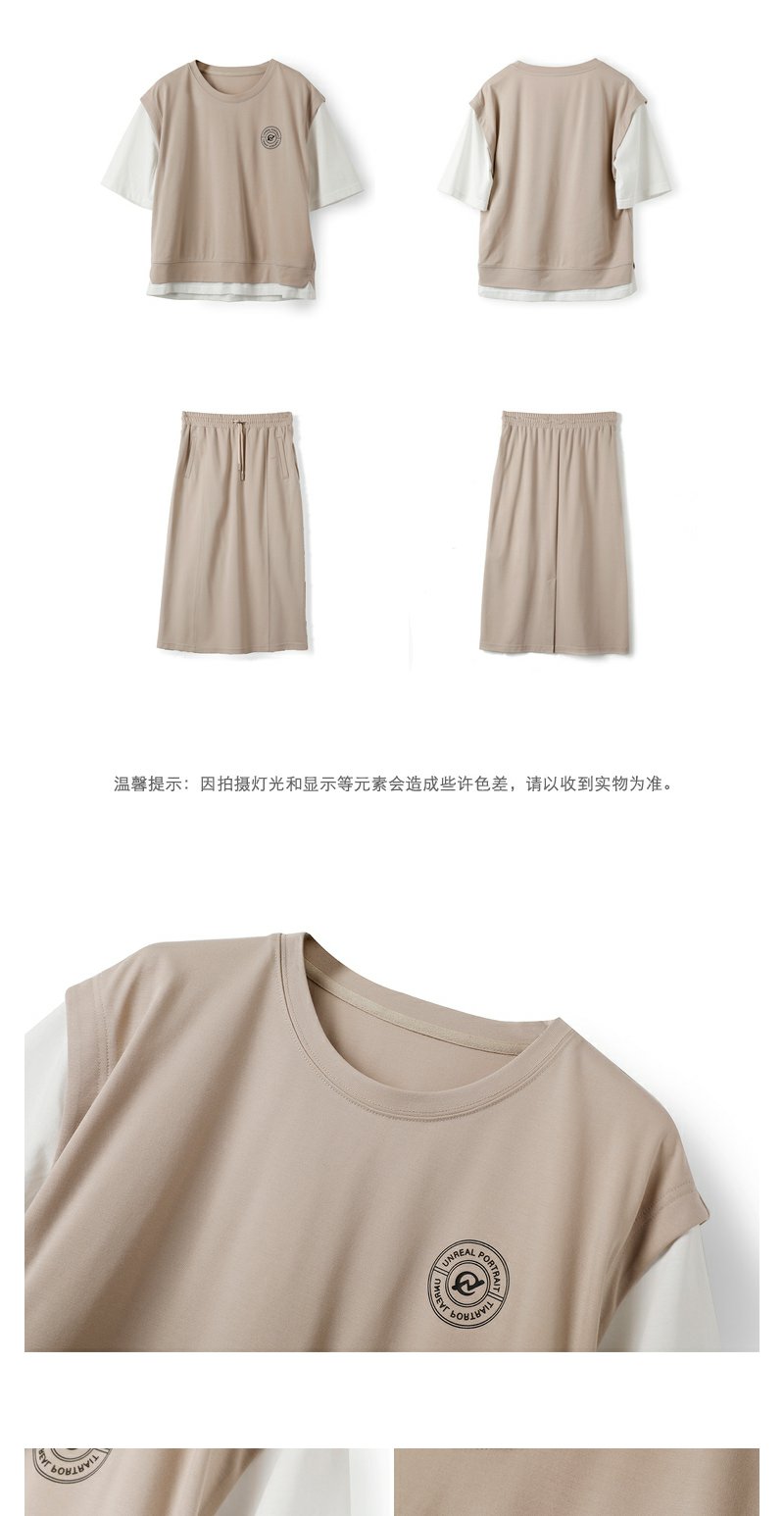NEELLY纳俪商场同款假两件短袖半身裙运动休闲套装女夏季减龄显瘦