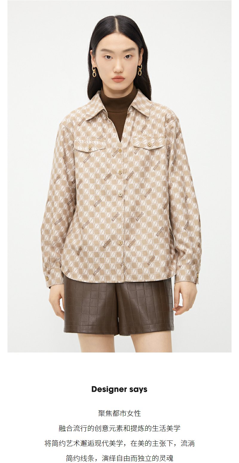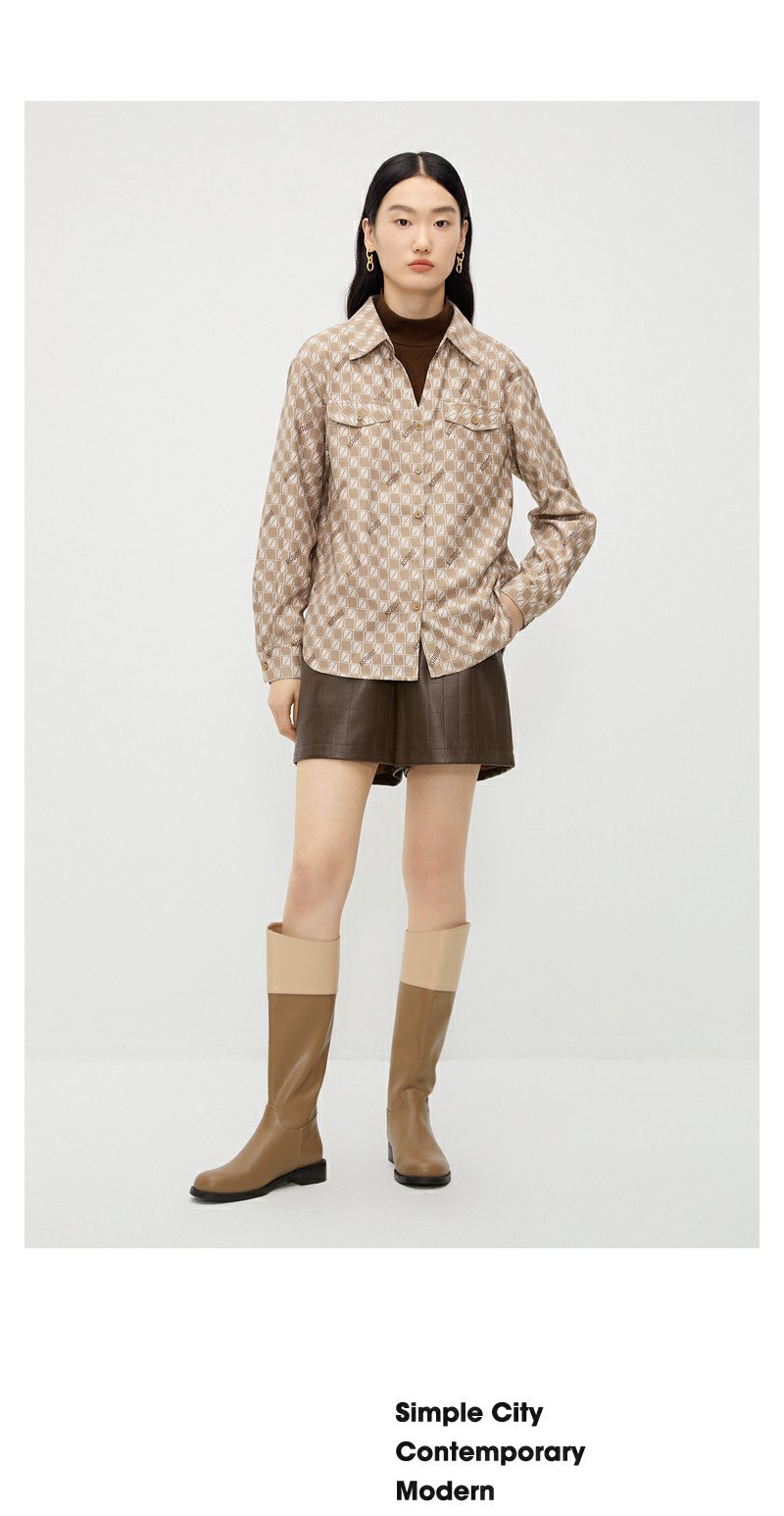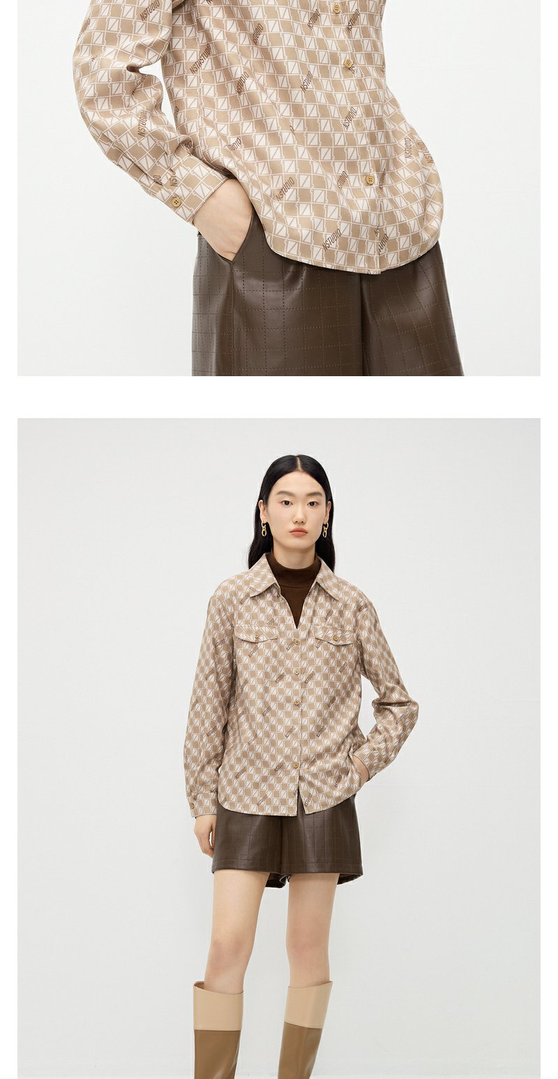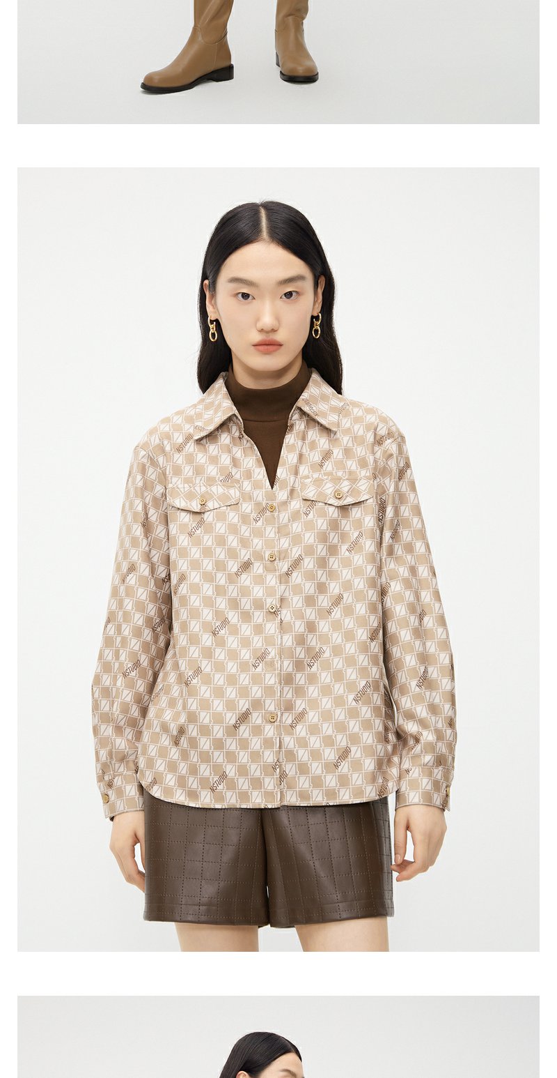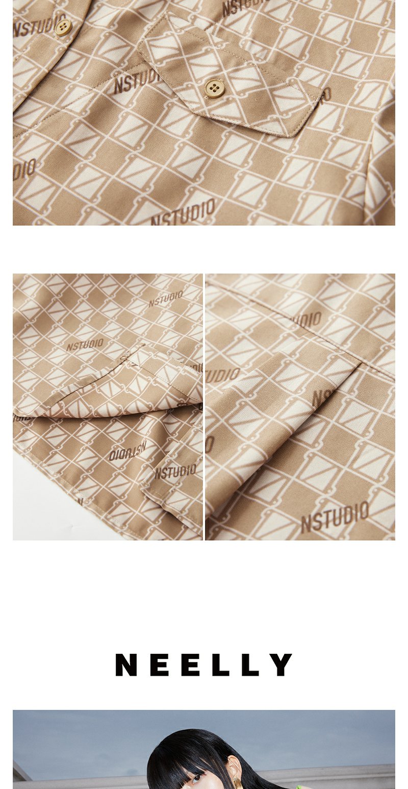 NEELLY纳俪商场同款假两件衬衫女冬季新款驼色棋盘格时尚百搭上衣N23102B01047