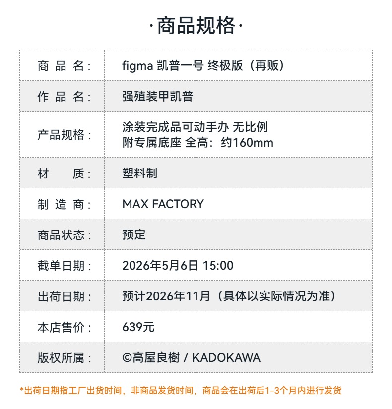 【GSC预售定金】figma 凯普一号 终极版 强殖装甲凯普 附官方限定特典