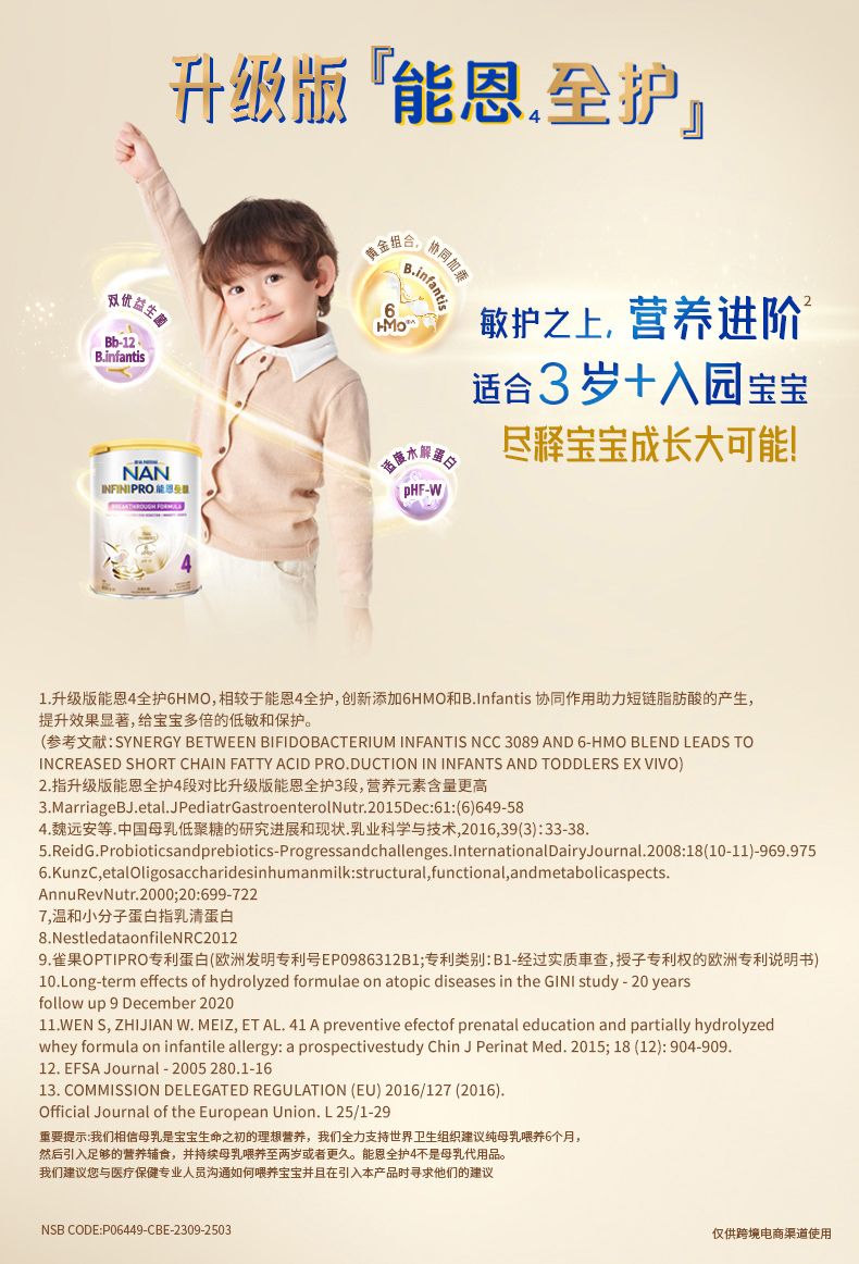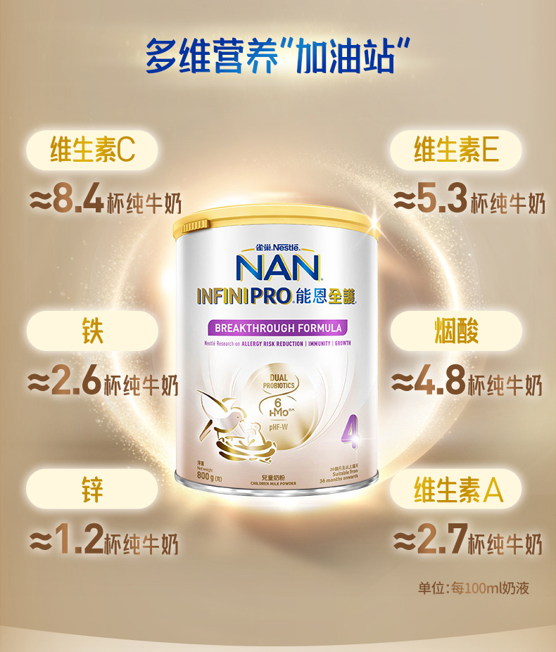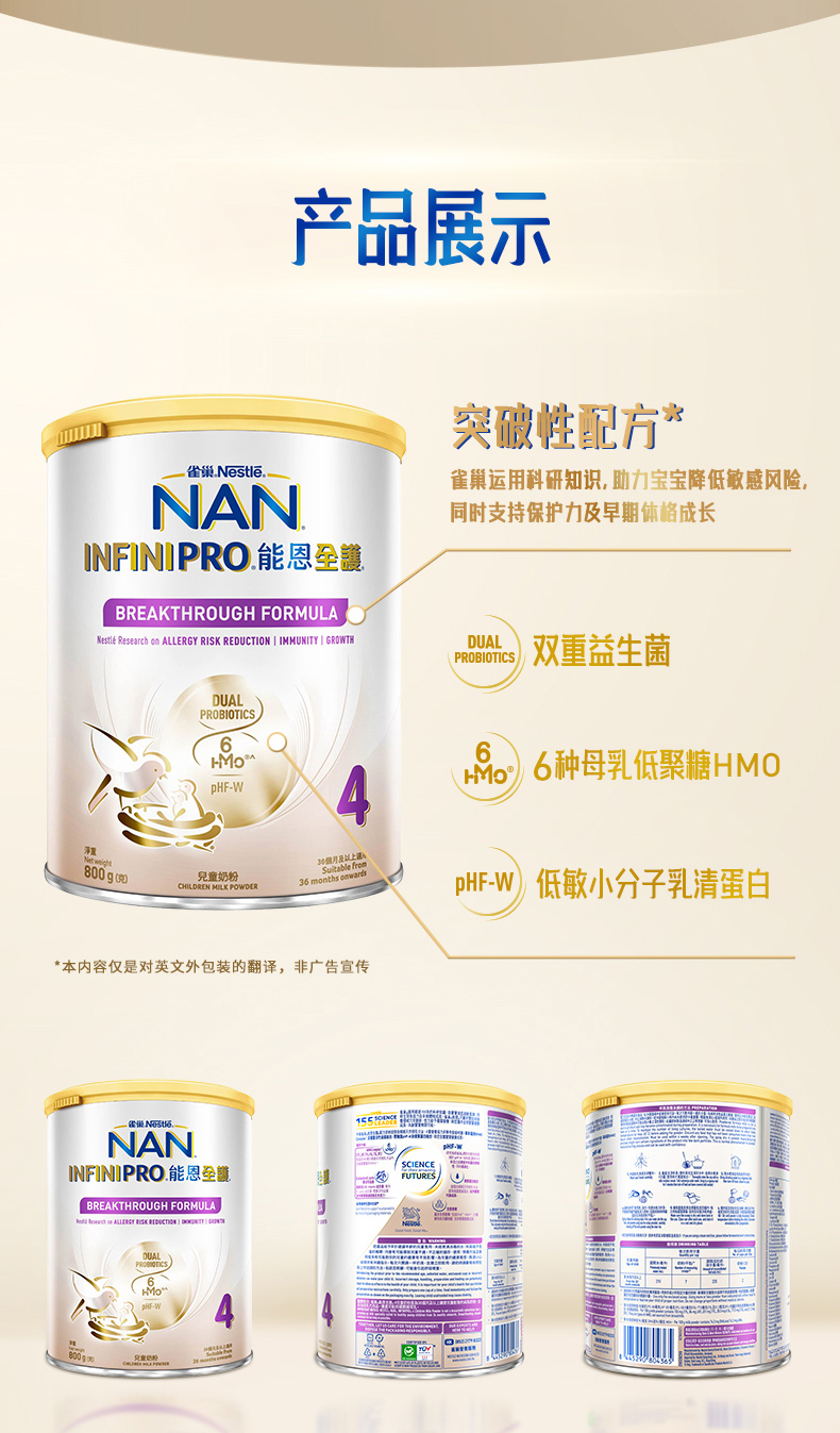 【跨境进口】义乌仓 Nestle港版雀巢能恩全护6HMO较大婴儿配方奶粉4段800g,效期27年2月 | 报关后不支持退换货,介意慎拍