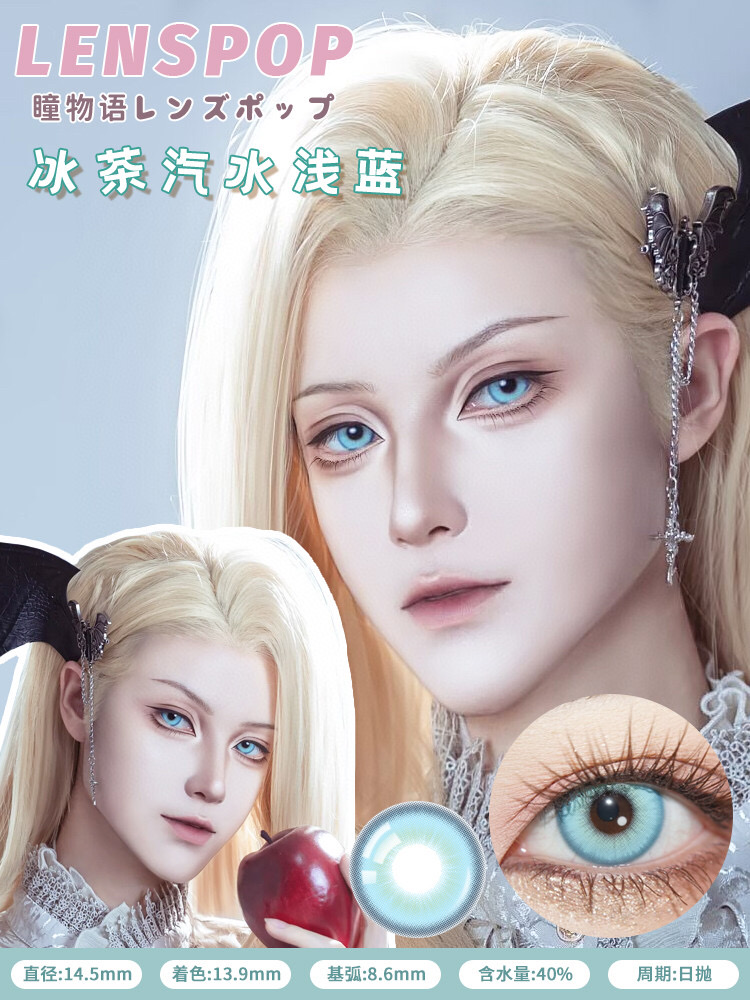 【试戴片】LENSPOP日抛④ 新品 冰砂糖深蓝 爆款 冰茶汽水/高光月球/光晕系列 冰茶汽水金棕/冰茶汽水浅蓝/高光月球绿/光晕棕/光晕灰 COS同款 咒术回战五条悟/崩铁黄泉/知更鸟 显色美瞳