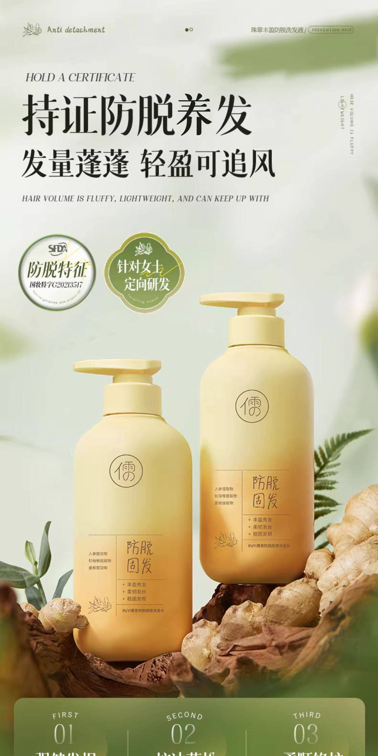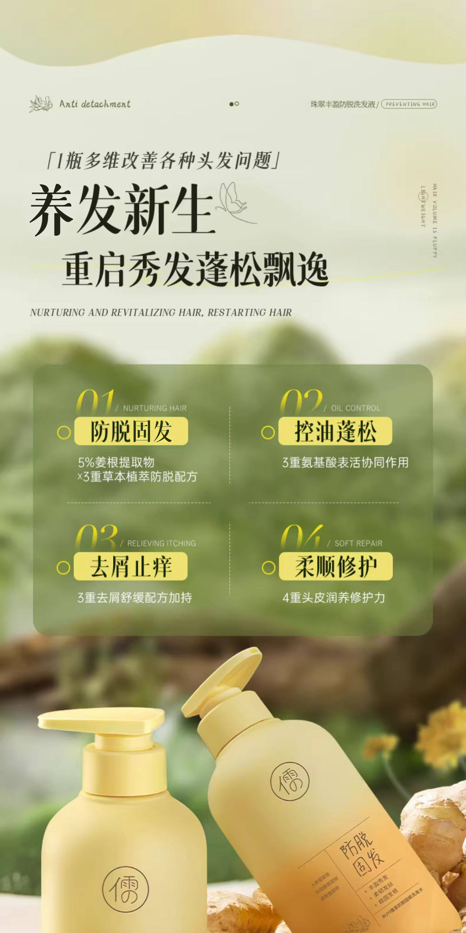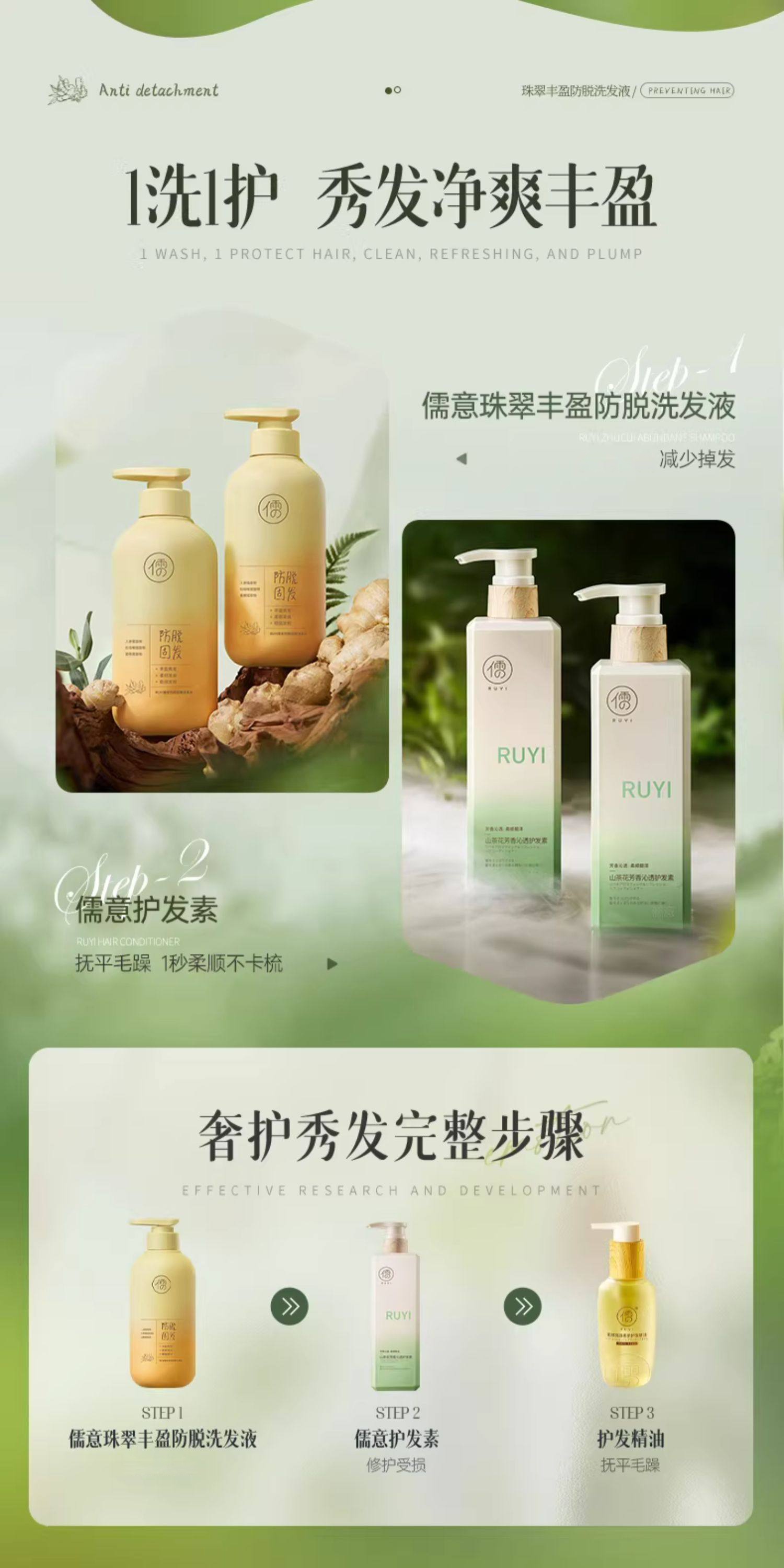 【99任选3件|均价¥33/件】儒意珠翠丰盈防脱洗发液500g 洗发水滋养发根控油祛屑头发护理洗发露| 儒意官方旗舰店