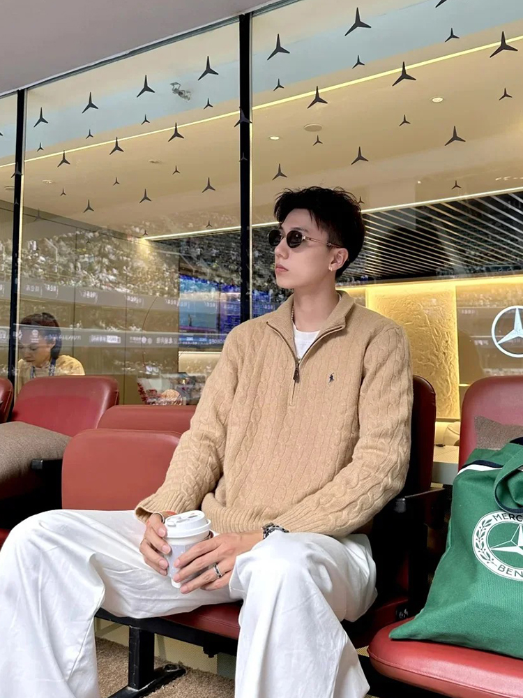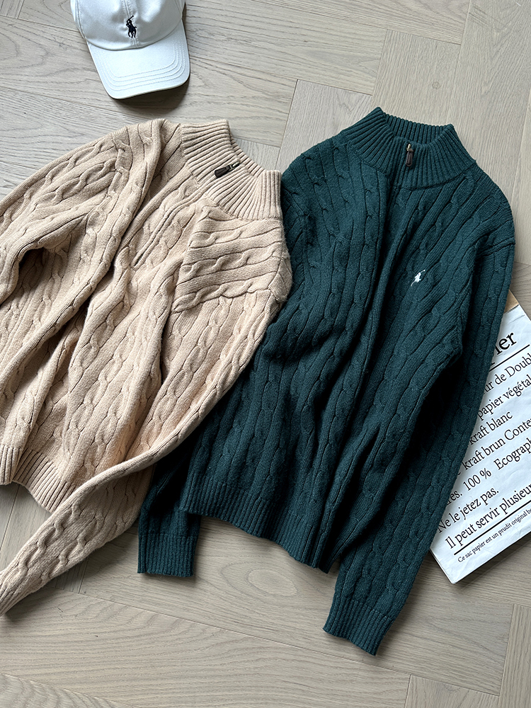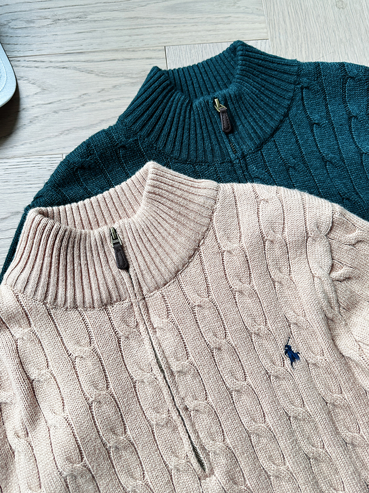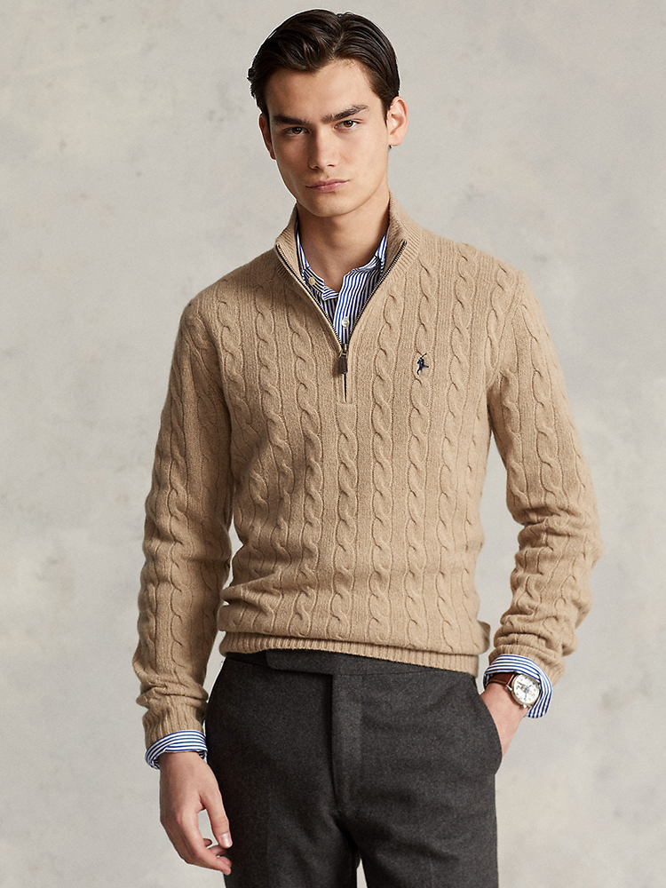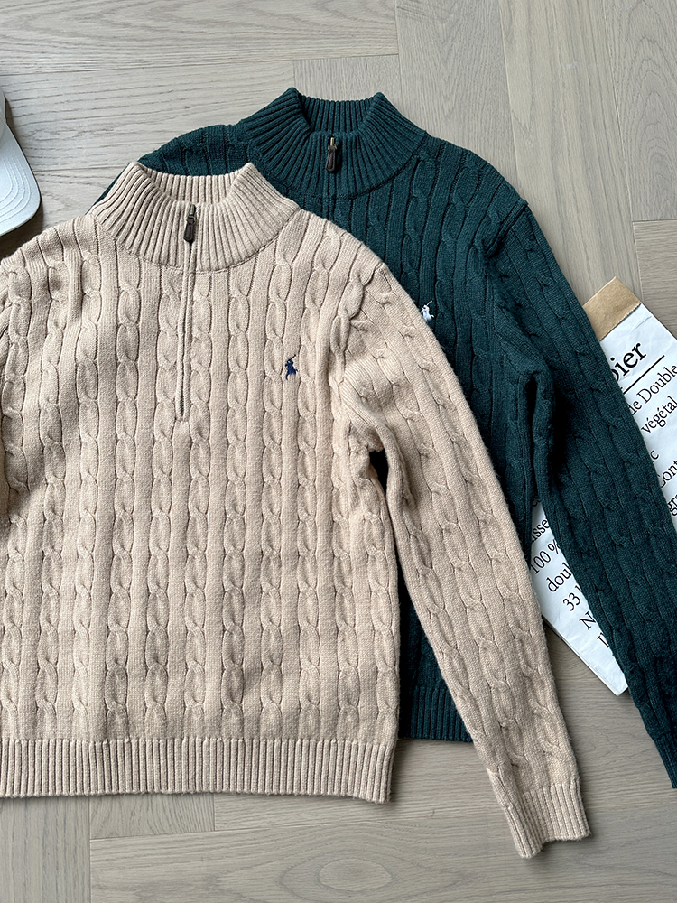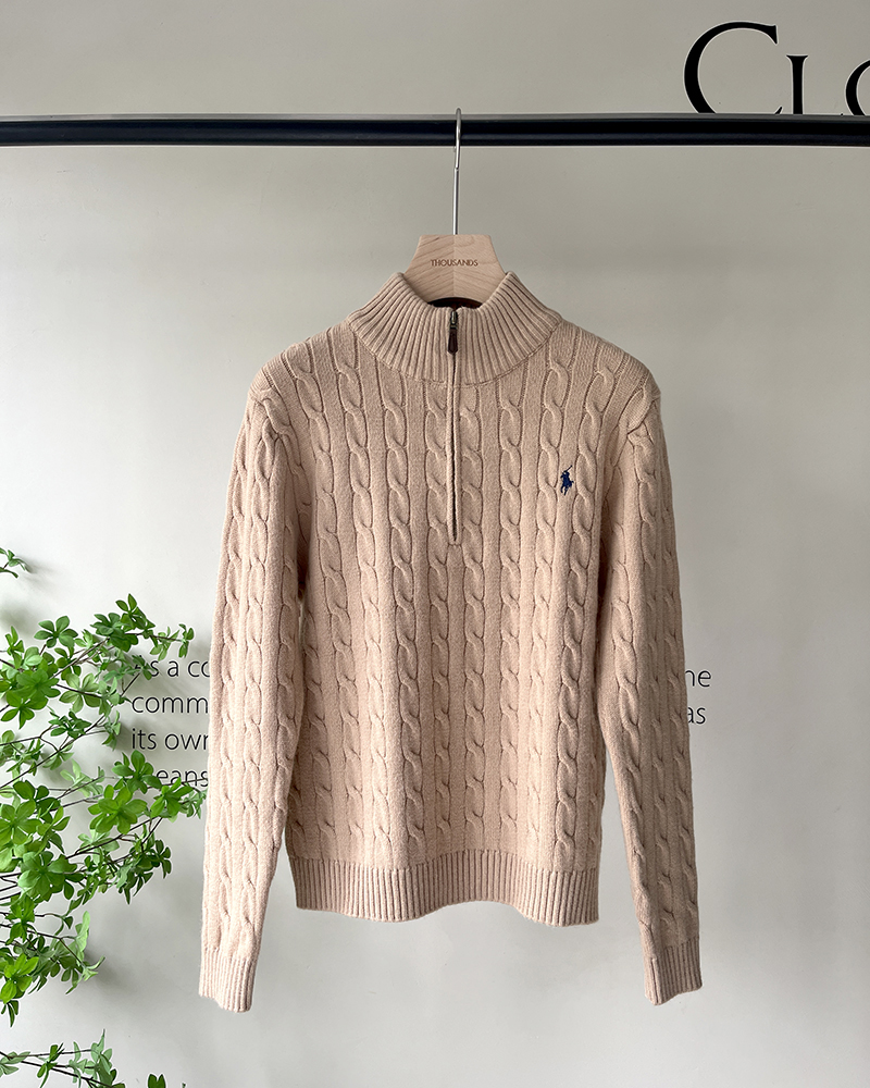 单品包邮现货 THS-无 RL马球 男士 源厂尖尾PRL Cable Knit羊毛羊绒绞花半拉链针织 2色 AM1139