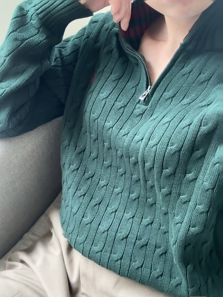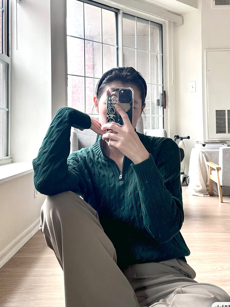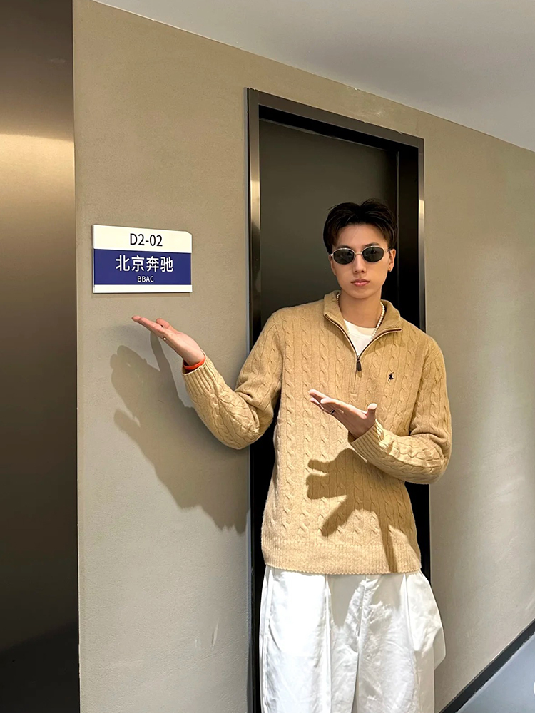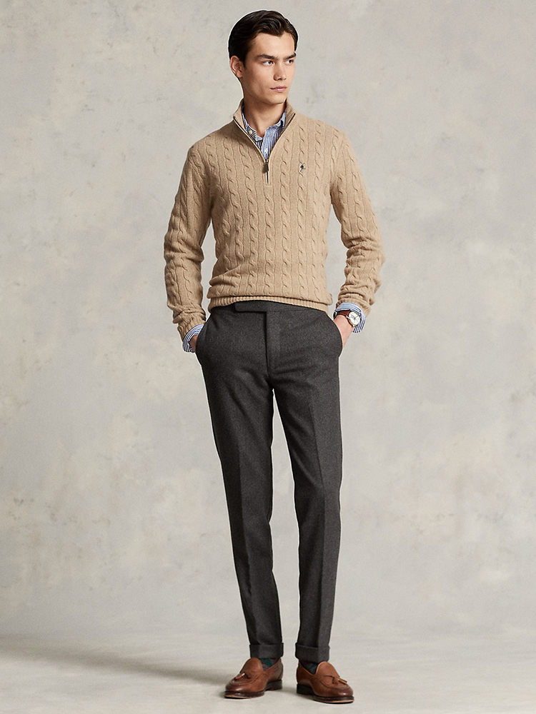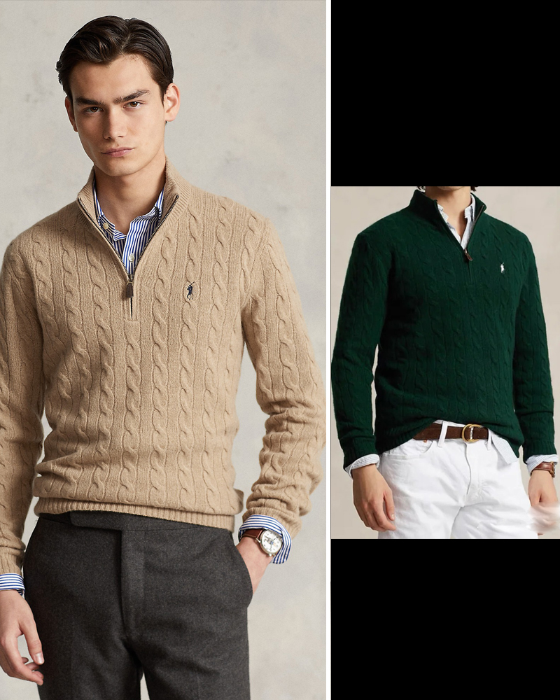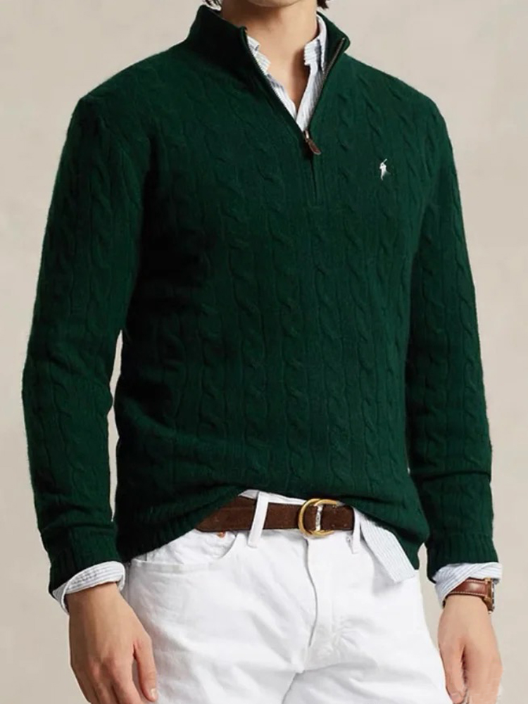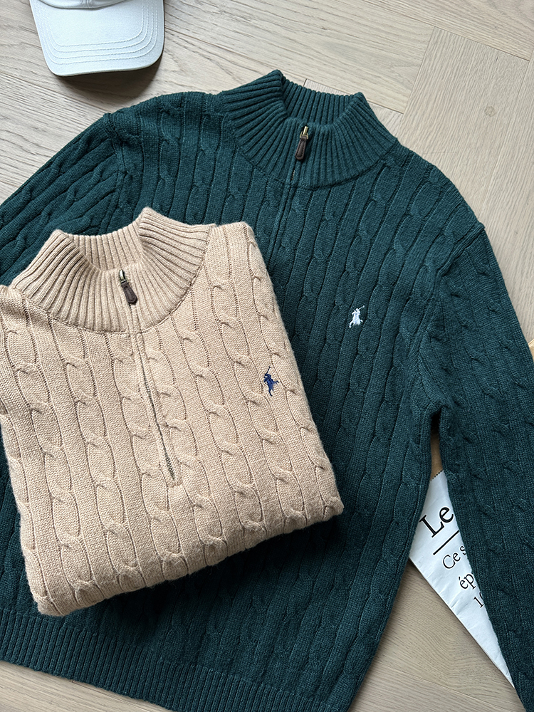 单品包邮现货 THS-无 RL马球 男士 源厂尖尾PRL Cable Knit羊毛羊绒绞花半拉链针织 2色 AM1139