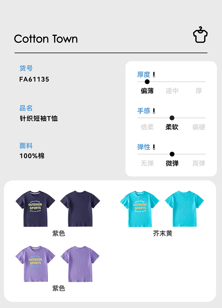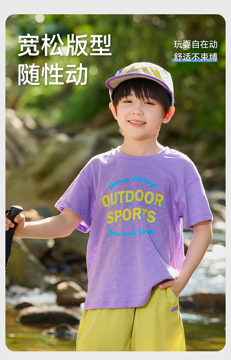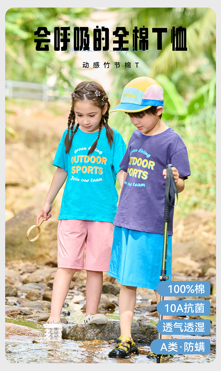 【10A抗菌纯棉】棉花堂夏款动感竹节棉潮趣印花童装短袖T恤--- FA61135
