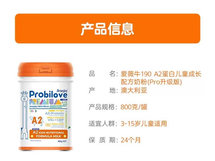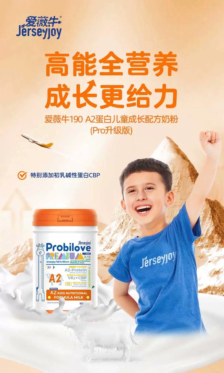 【保税】澳洲爱薇牛190 A2蛋白儿童成长营养配方奶粉(Pro升级) 800g